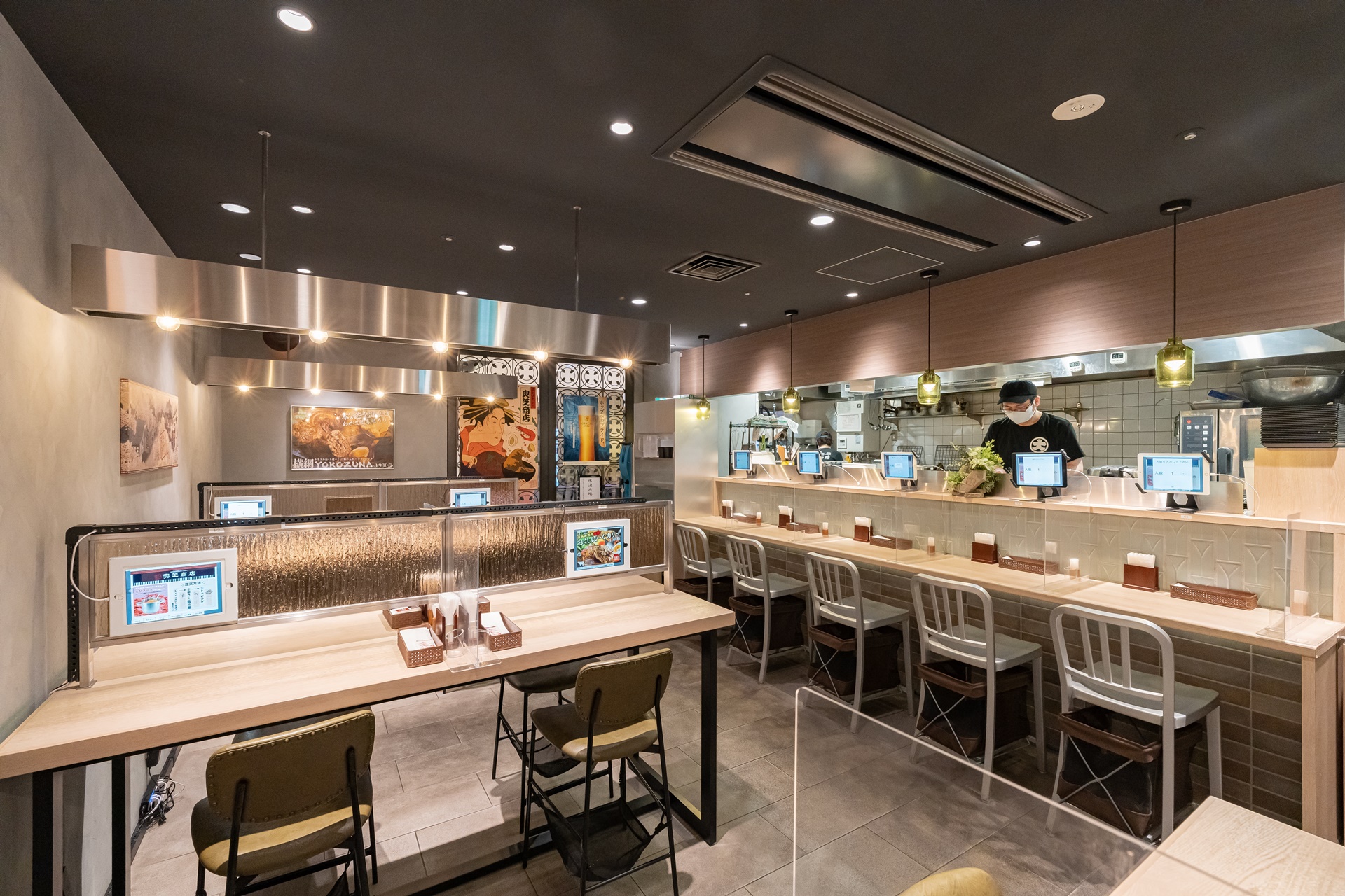 깔끔한 테이블과 넉넉한 공간의 오쿠시바 쇼텐