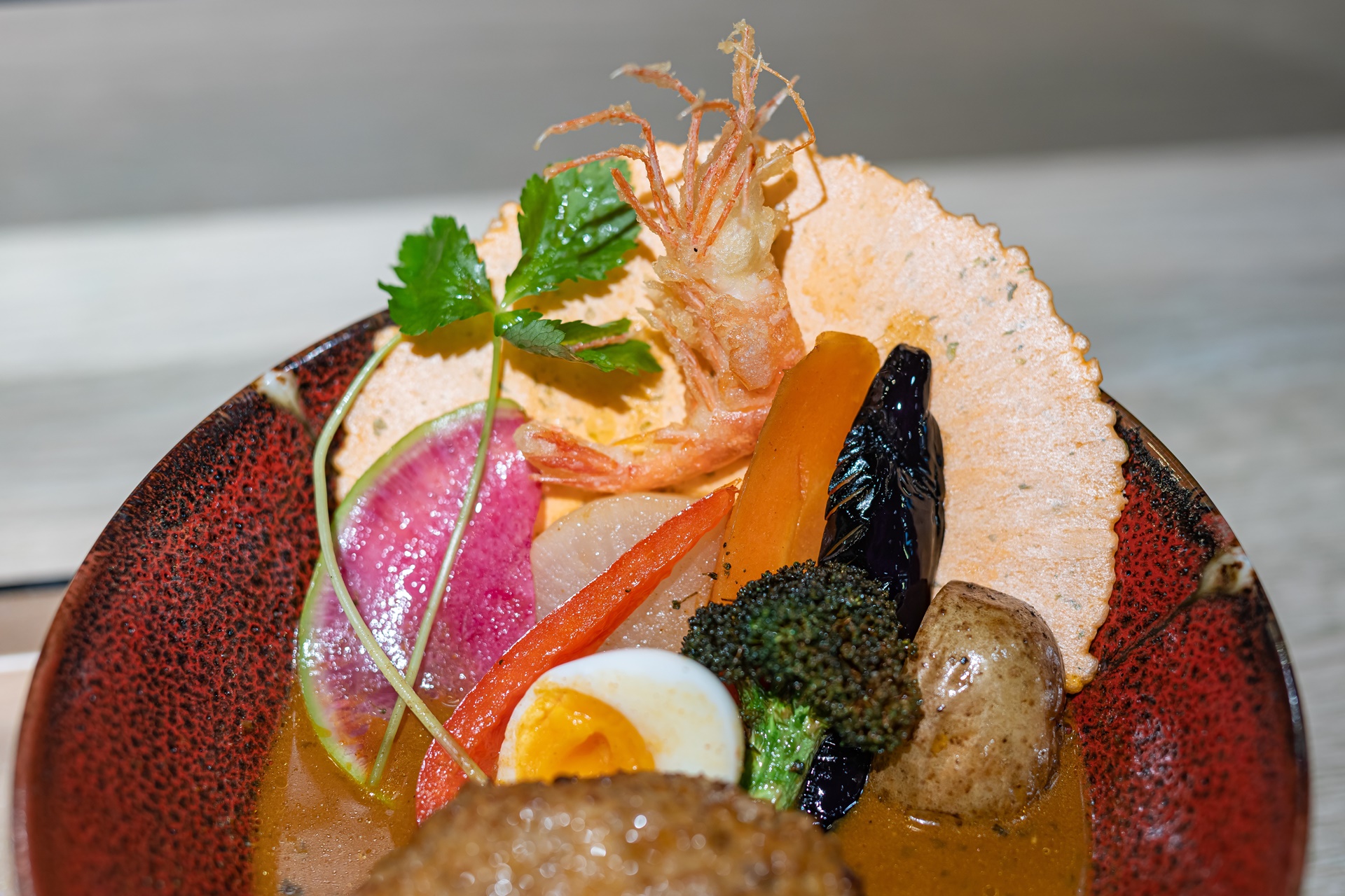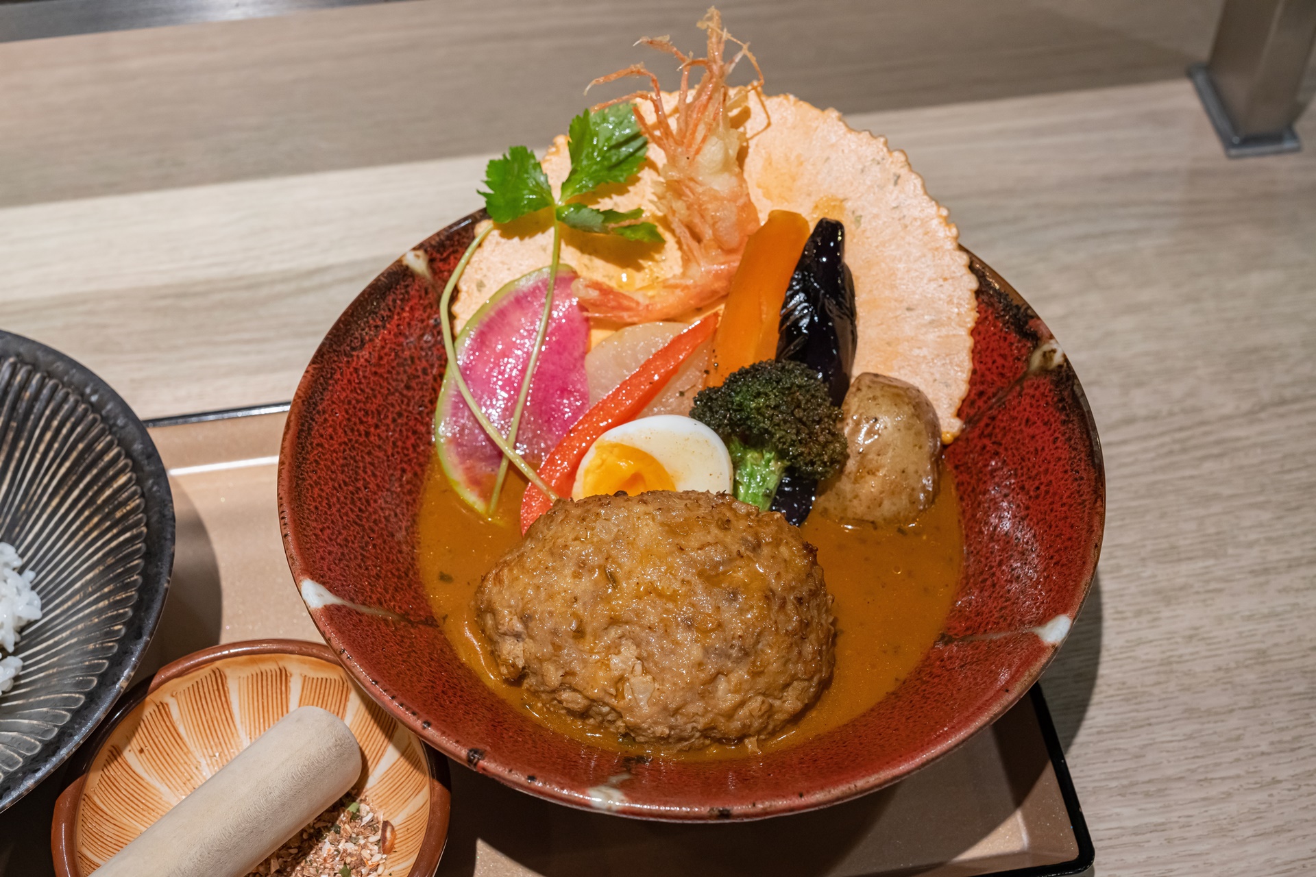 홋카이도의 스프카레 중에서도 이곳은 새우를 듬뿍 넣어 육수를 낸 스프카레를 맛볼 수 있습니다.
