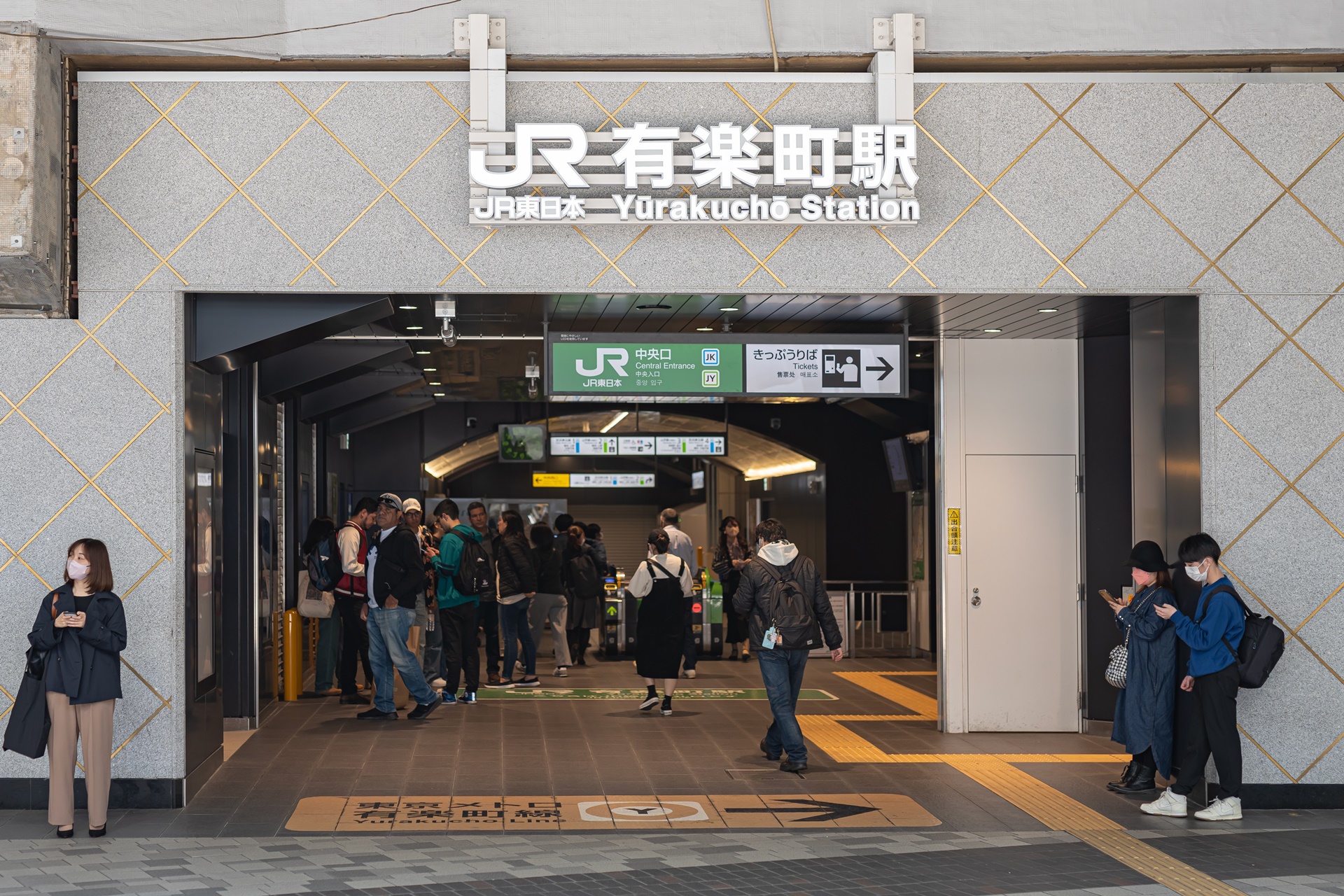 JR 유라쿠초역 중앙출구를 이용하여 밖으로 나오면 바로 앞에 마루이(0101)라는 큰 패션 쇼핑센터가 있습니다.