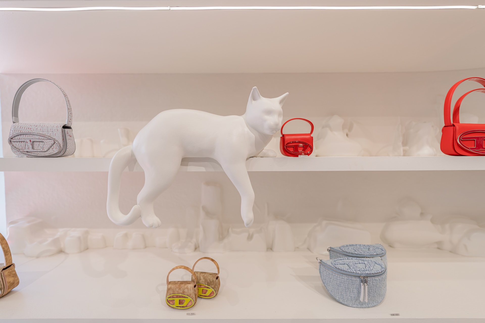 귀여운 디젤 가방과 고양이 오브제