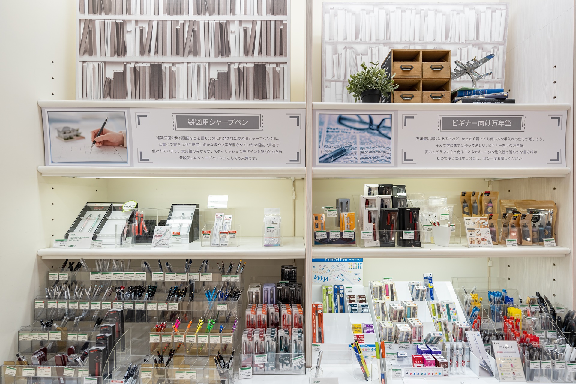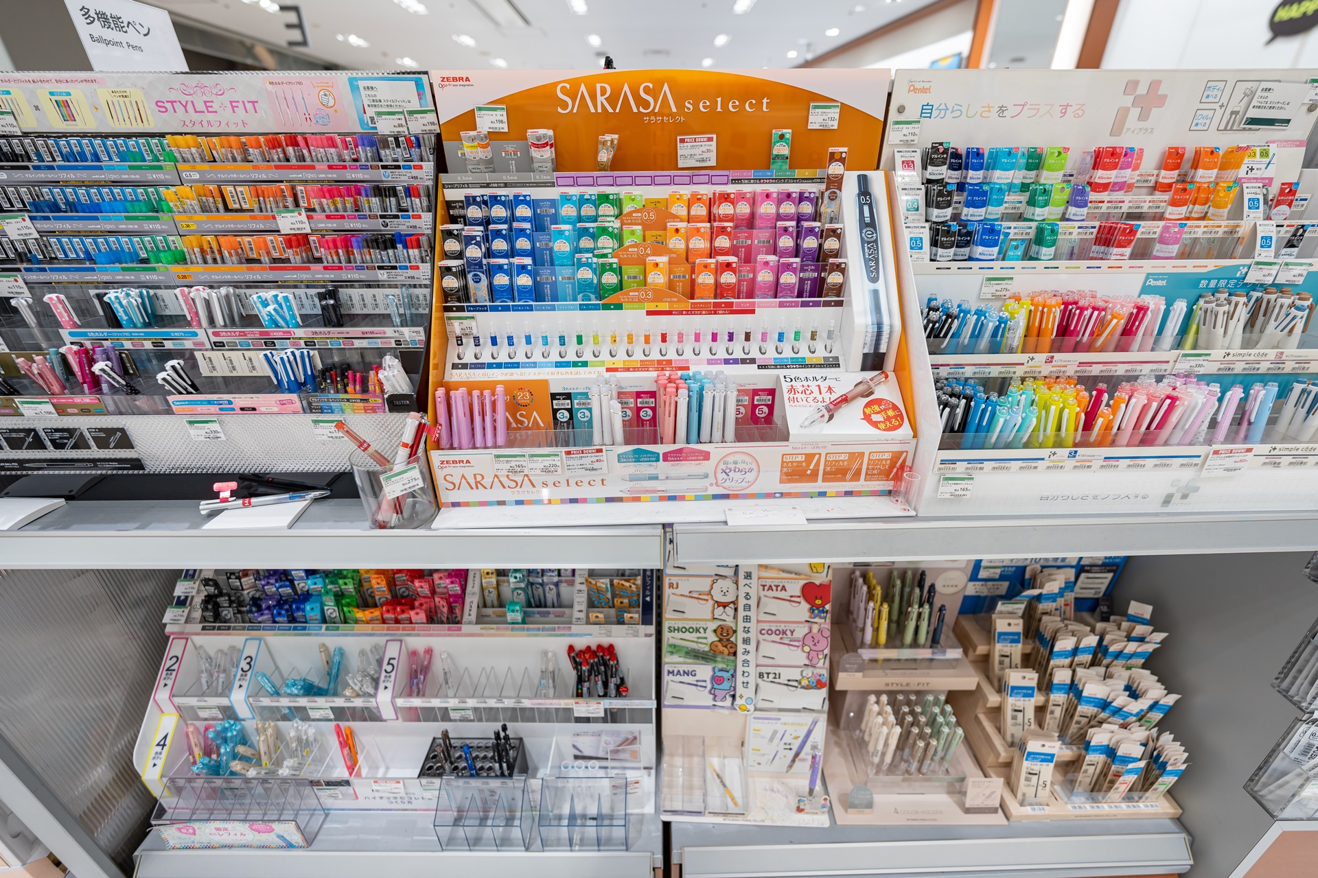 다른 층에는 다양한 문구류가 진열되어 있었습니다.