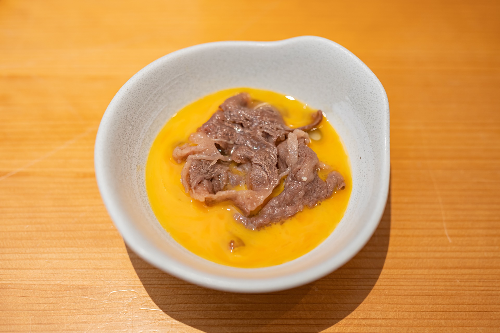 계란이 스키야키의 짠맛을 중화시키며 고기를 더욱 부드럽게 느끼게 해줍니다.