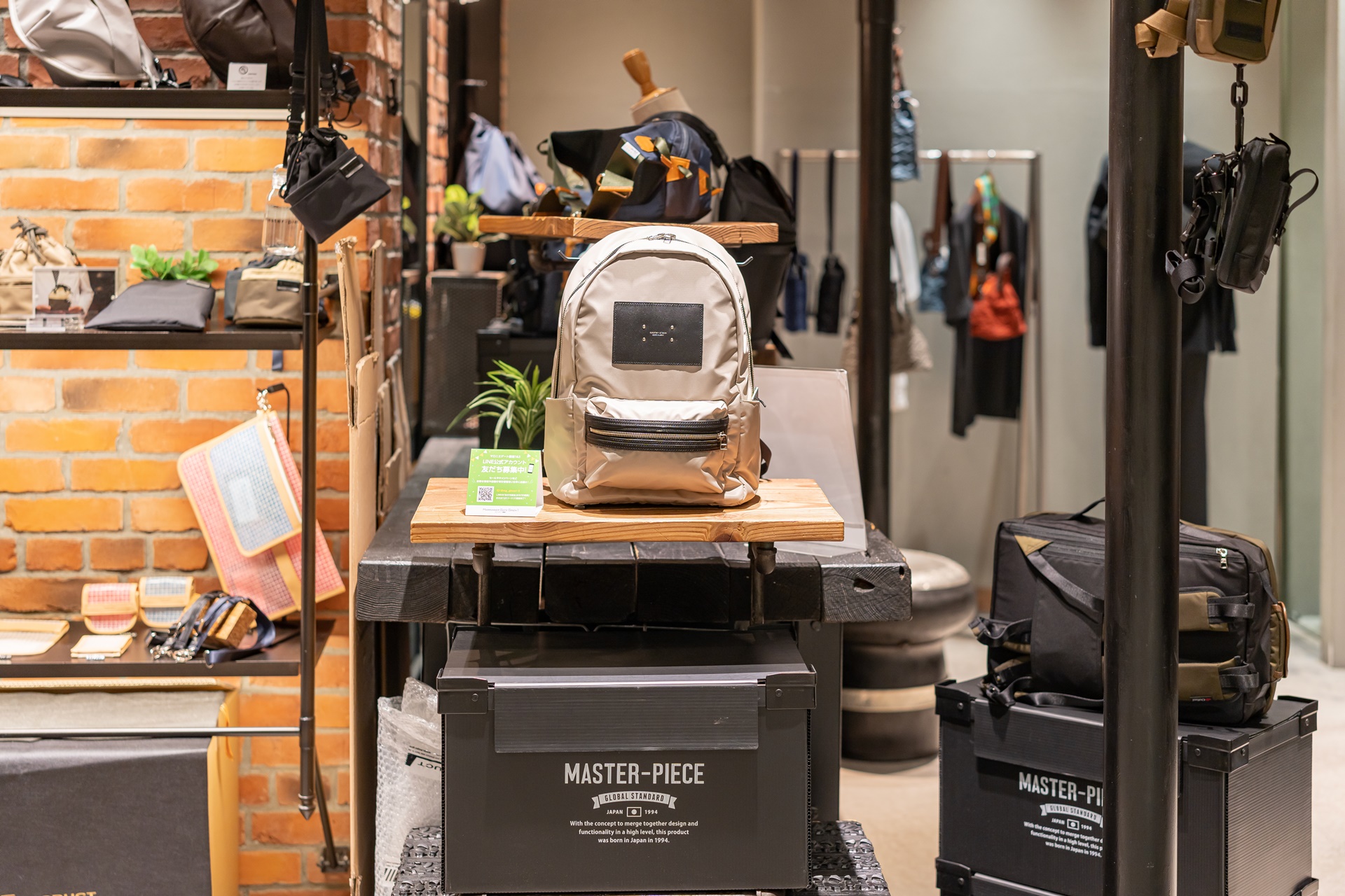 소재의 조합이나 독자적인 컬러링, 국 내외에서 엄선한 부품, 기능 소재를 사용하며 패션성과 기능성을 겸비한 백을 패션의 일부로 제안 하는 메이드 인 재팬 브랜드 마스터 피스(MASTER-PIECE)