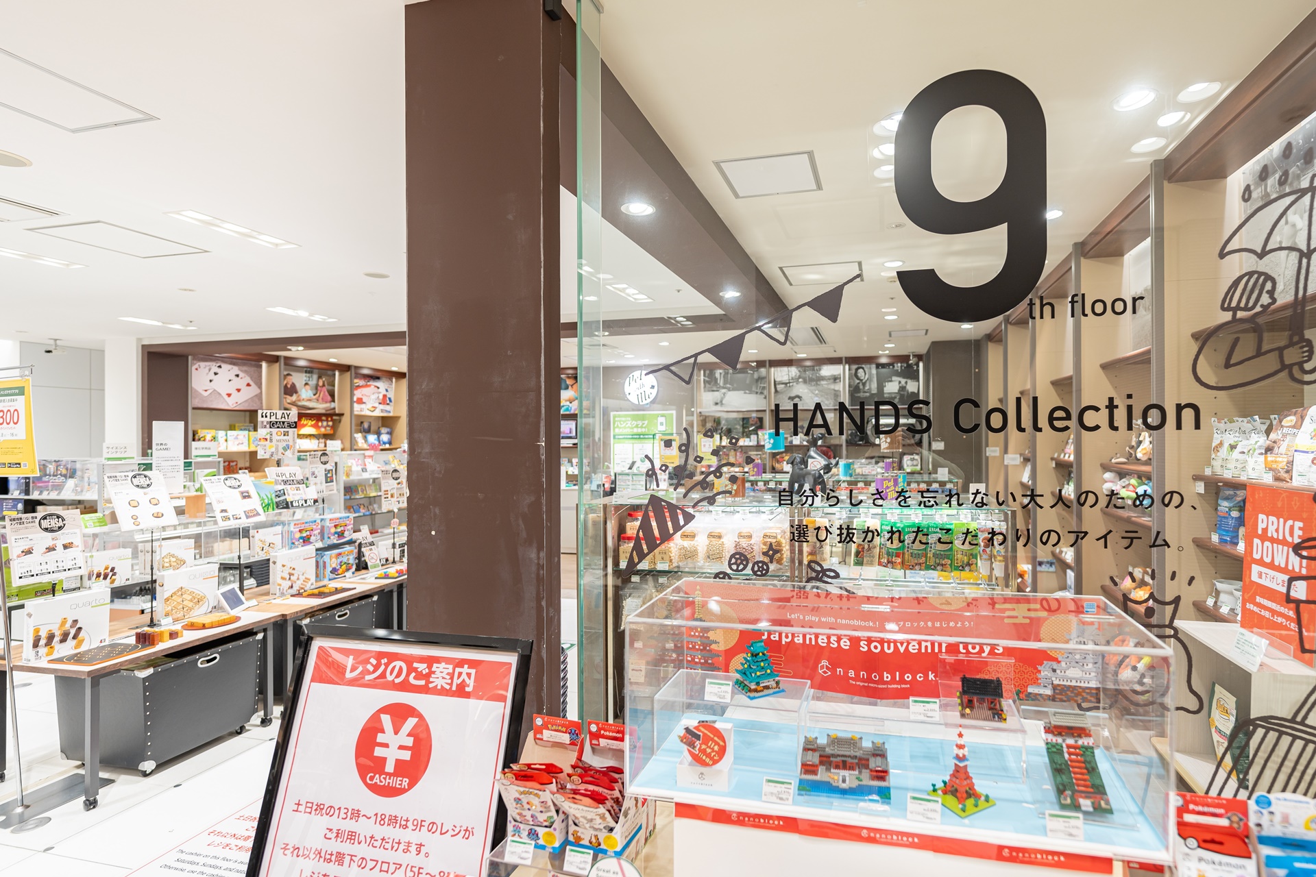 마로니에게이트에의 5층부터 9층까지는 다양한 잡화와 문구, 브랜드 상품이 모여있는 핸즈(HANDS) 긴자점이 있습니다.