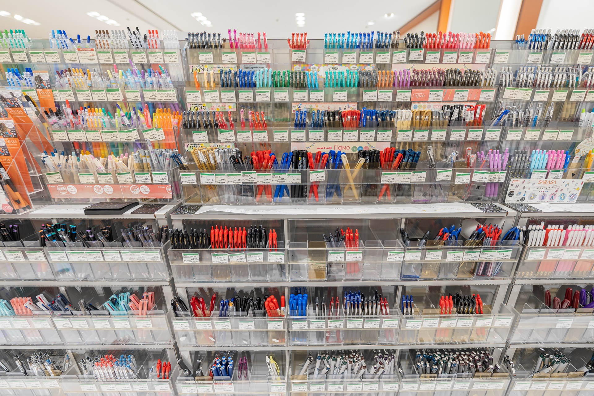 다른 층에는 다양한 문구류가 진열되어 있었습니다.