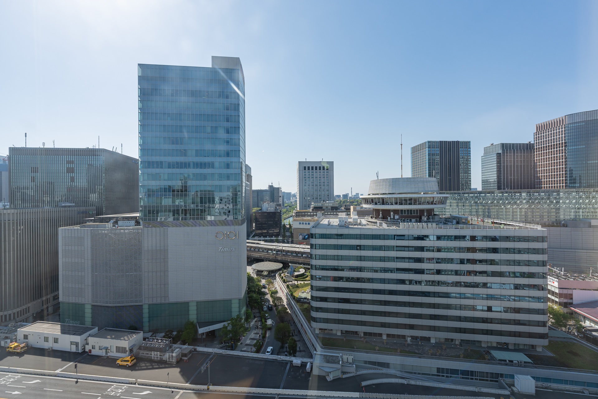 창밖에는 유라쿠초 역 주변의 풍경이 보입니다.