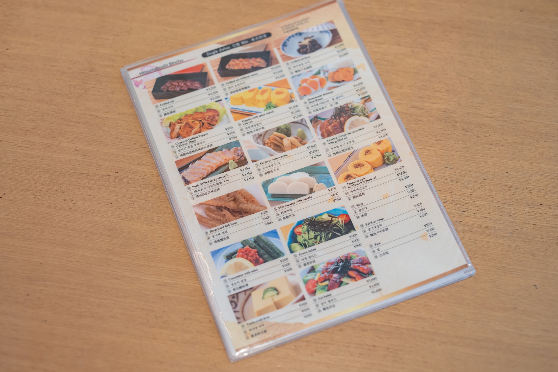빈쵸의 히쓰마부시는 3,950엔 부터 시작하며 장어에 양에 따라 가격이 달라집니다.