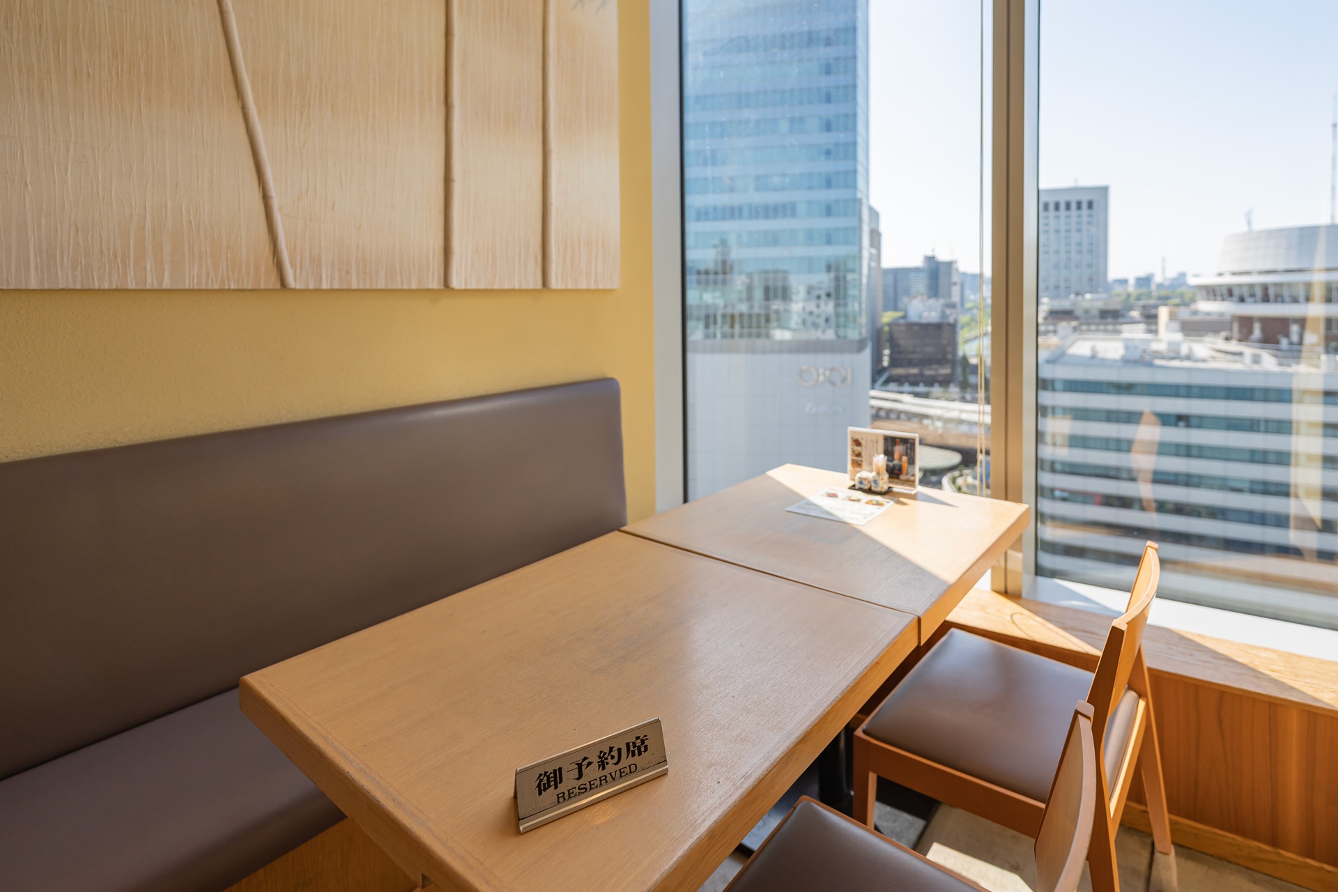 자리는 도쿄 도심의 풍경이 보이는 창가 자리를 잡았습니다.