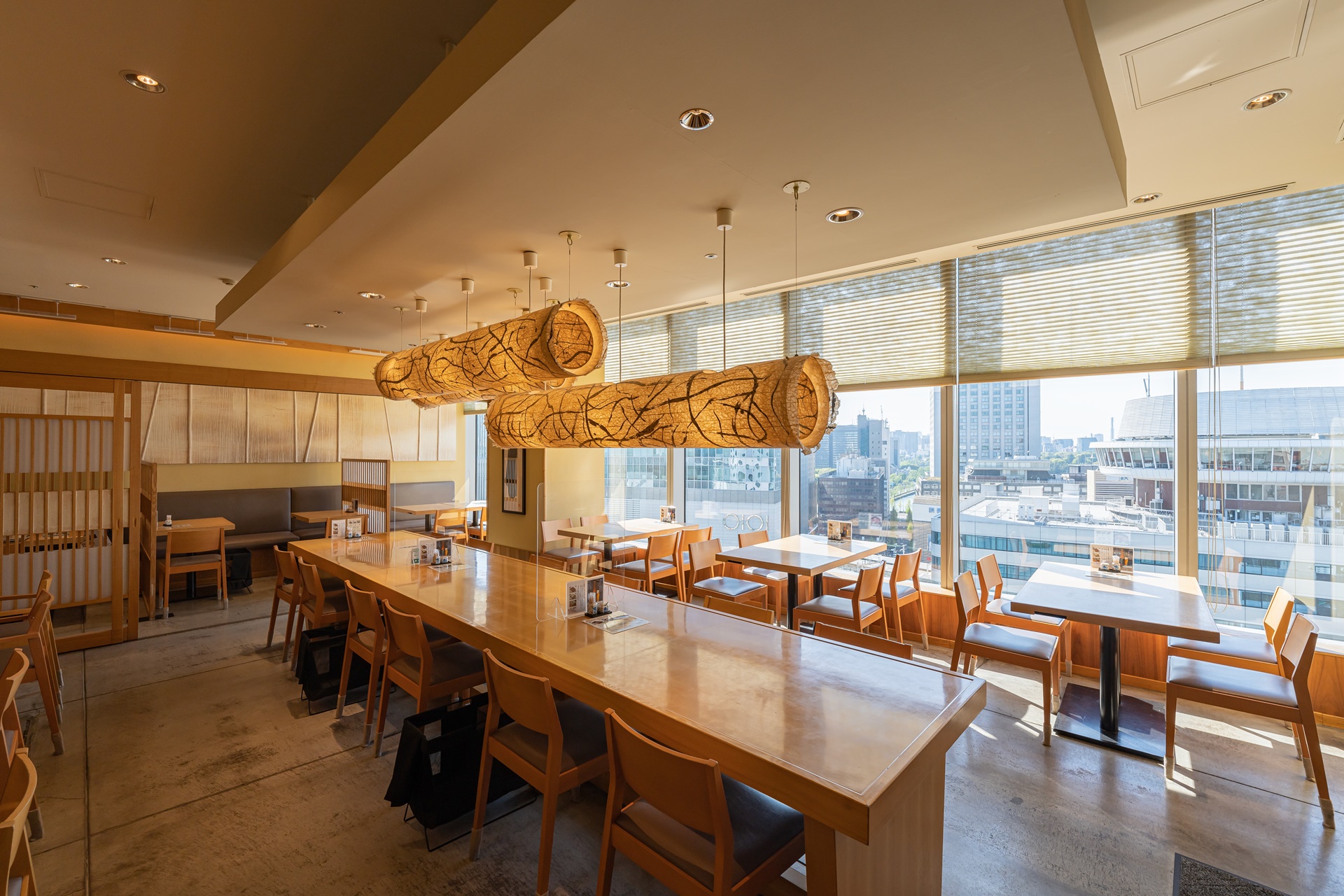 자리는 도쿄 도심의 풍경이 보이는 창가 자리를 잡았습니다.