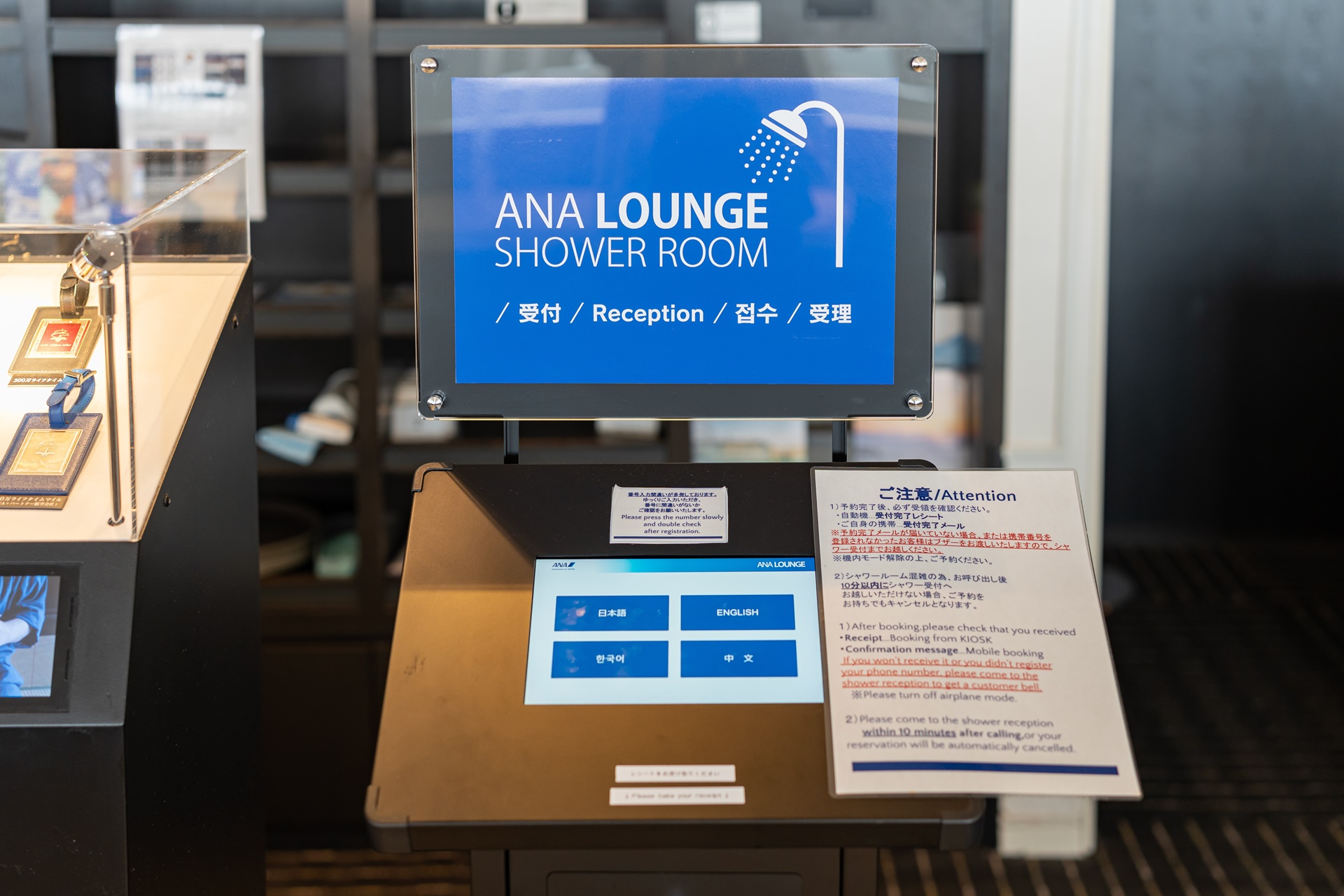 샤워도 가능하며 터치 스크린에서 접수를 하면 됩니다.