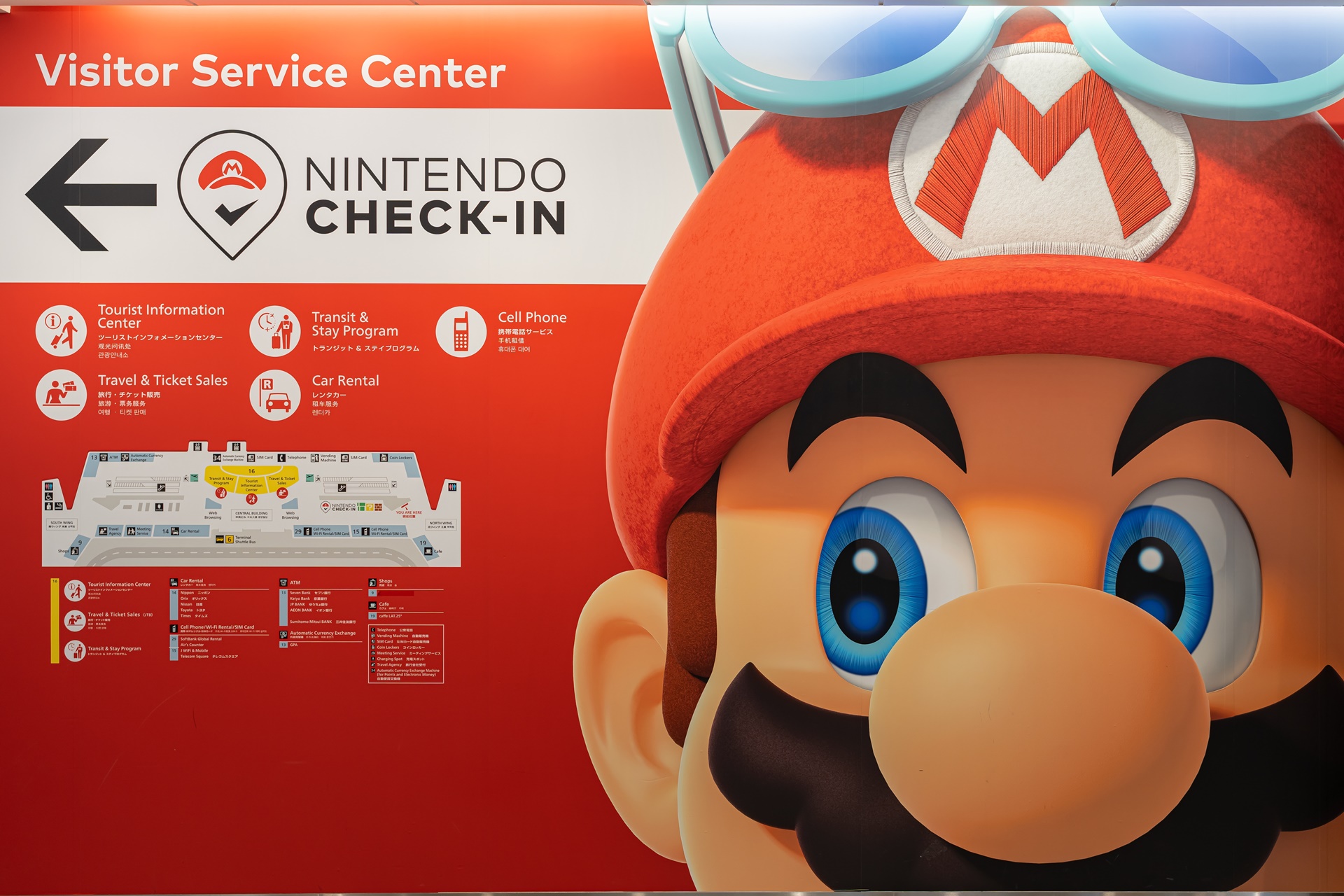 도착하는 터미널 1층에는 슈퍼 마리오가 기다리고 있는 인포메이션 센터가 있어 이곳에서 기념사진을 찍고 정보를 얻어가는 것도 좋을 것 같습니다.