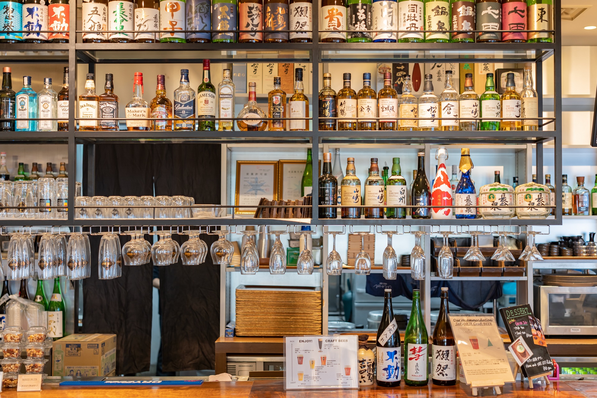 맥주와 위스키, 니혼슈등을 가볍거 마실 수 있으며