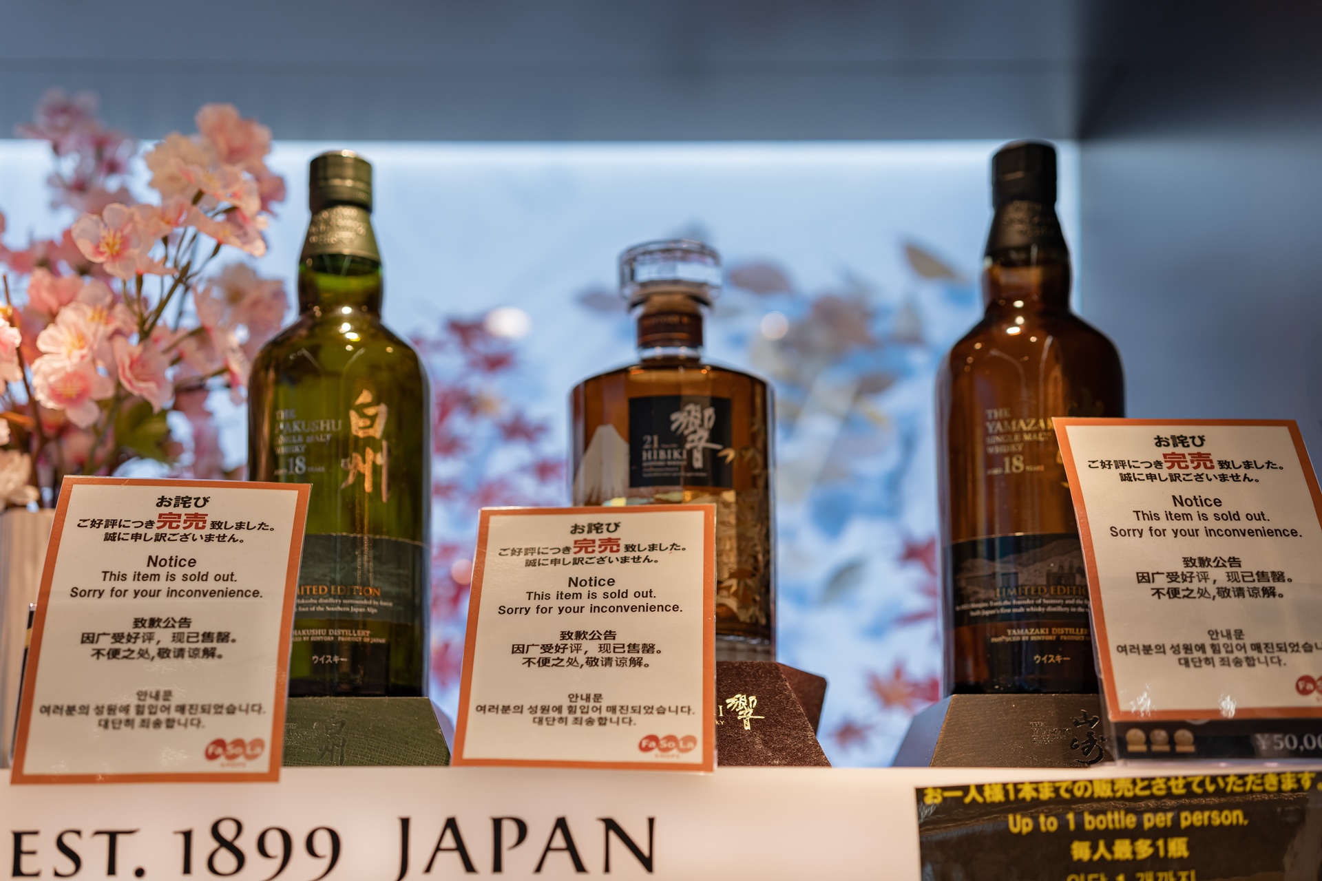 특히 하쿠슈 18년, 히비키 21년, 야마자키 18년도 판매하고 있었는데 이 제품들은 들어오자마자 전부 팔려버리기 때문에 분에 보이면 바로 구매하는 것이 좋습니다.