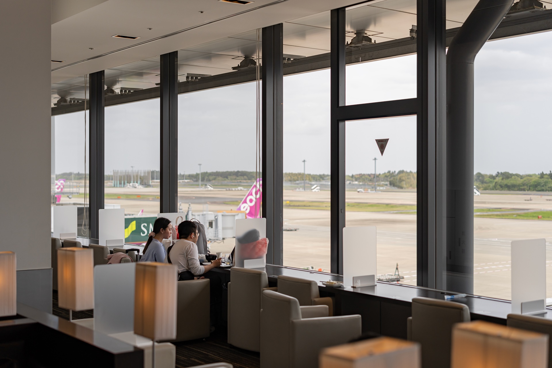 라운지에서는 창밖의 항공기들을 구경하며
