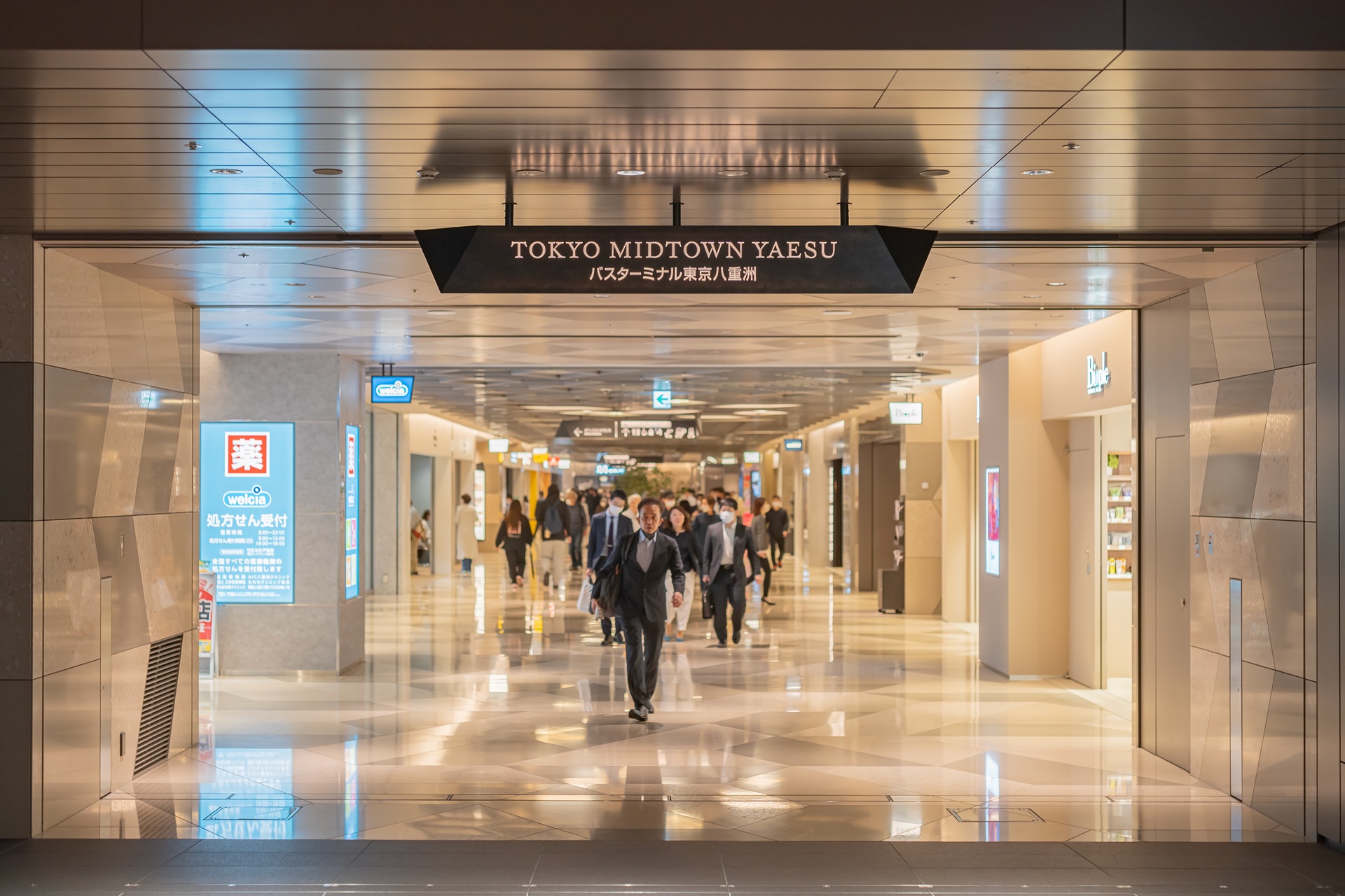 도쿄 미드타운 야에스는 야에스 치카가이를 통해 지하로 연결되어 있으며 이는 도쿄역과도 바로 연결 됩니다.