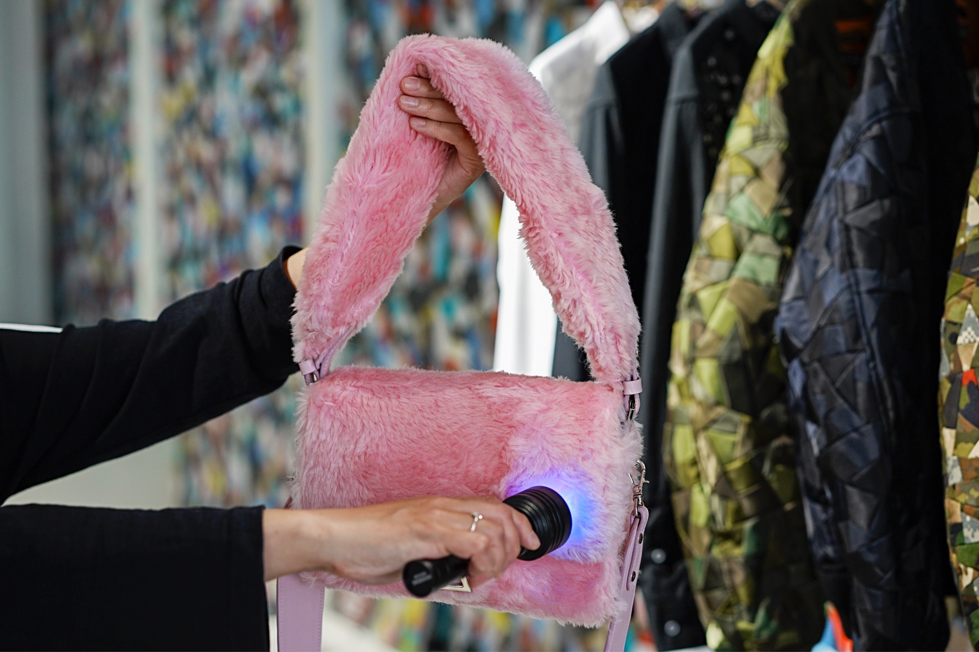 2023 F/W 파리패션위크에서 화재가 되었던 자외선을 받으면 색이 변하고 다시 3분 정도 자외선 노출이 지속되지 않으면 원래의 색으로 돌아가는 재미있는 소재로 멋진 패션 아이템을 개발한 언리얼에이지(Anrealage) 입니다.