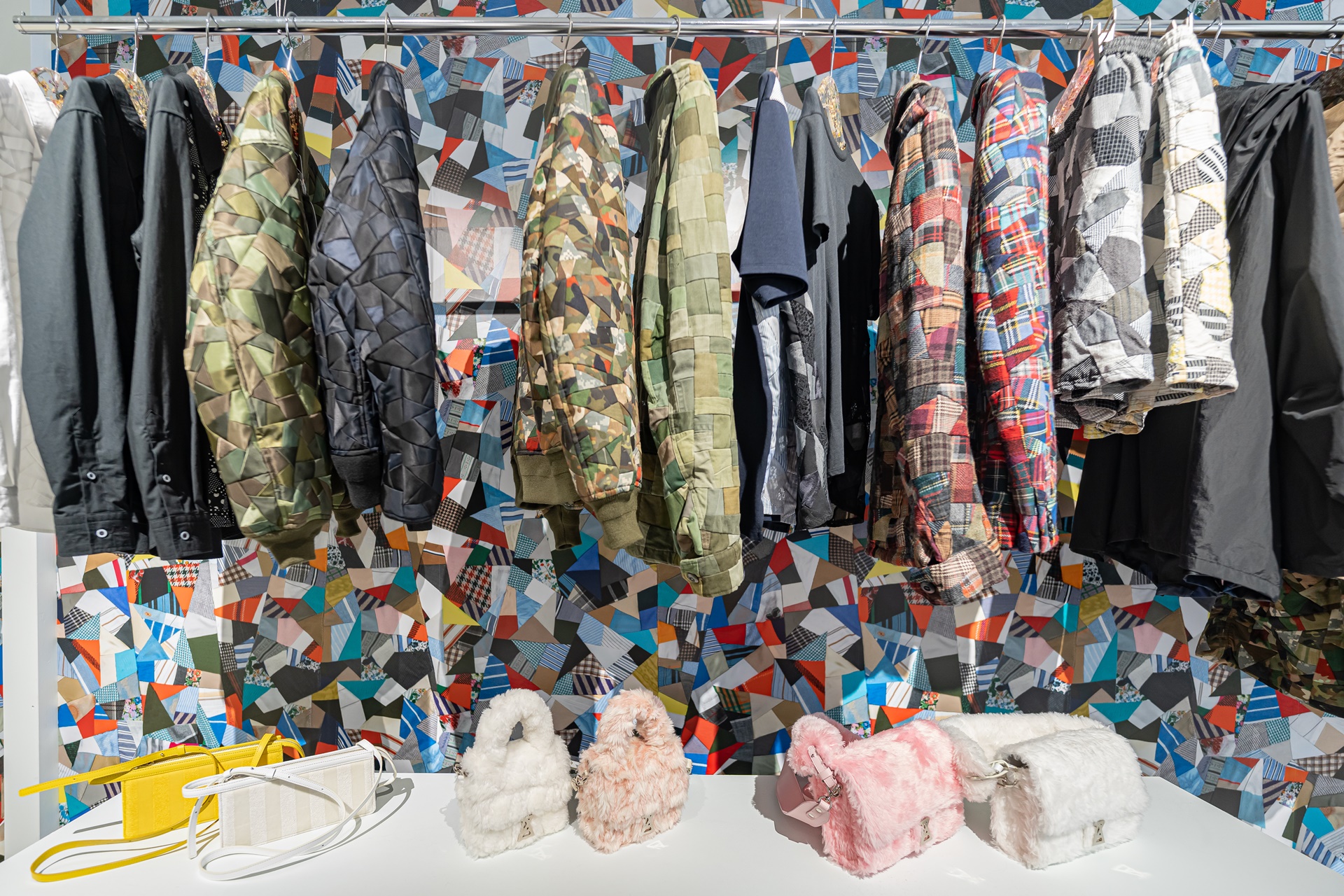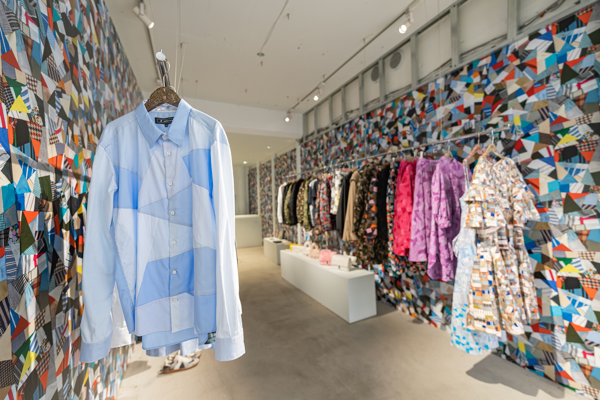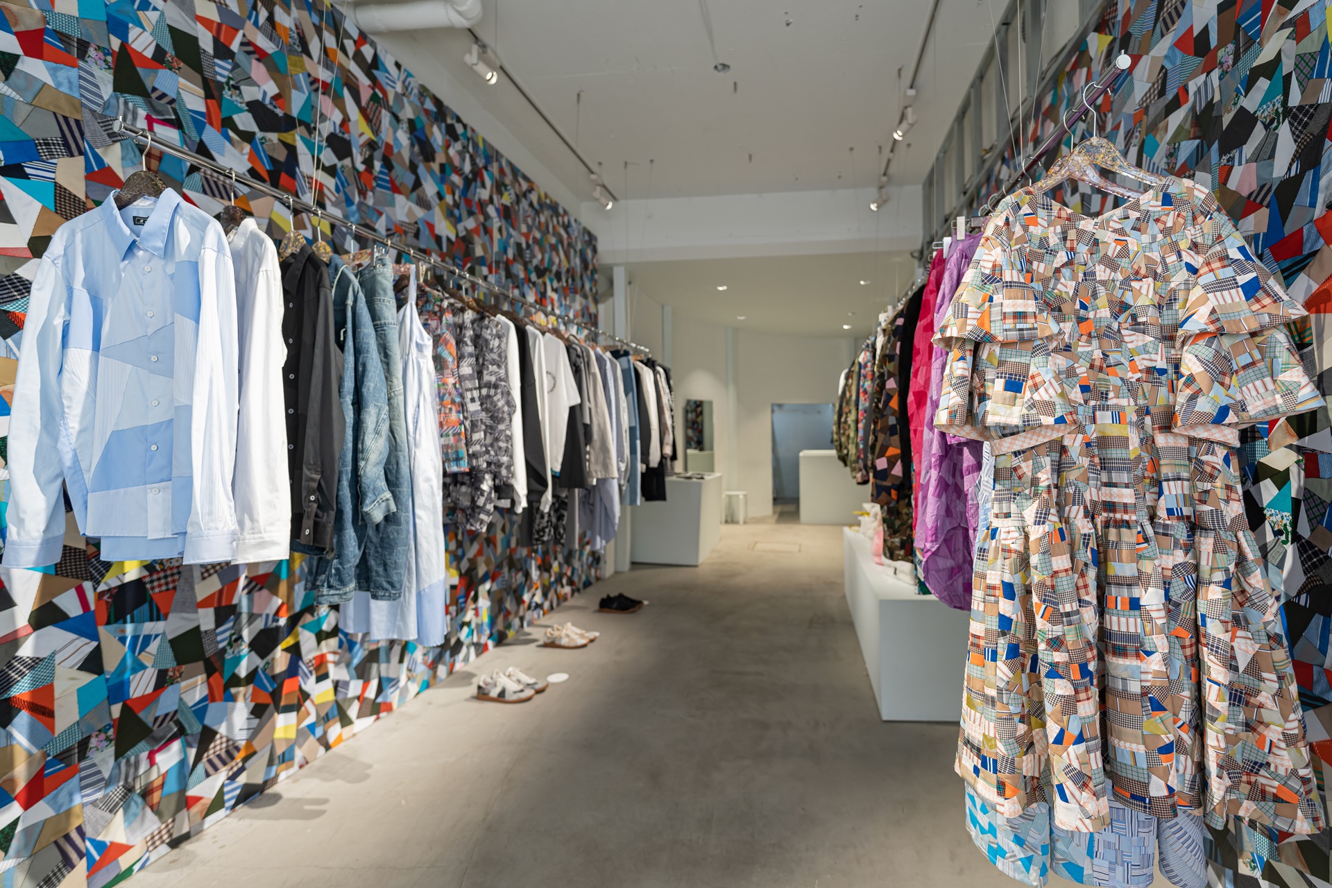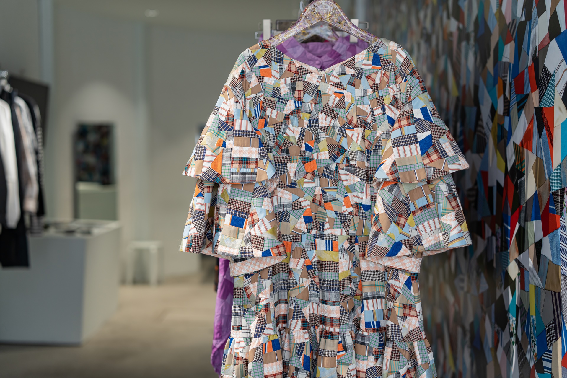 여러 천조각을 이어붙여 만든 패치워크 디자인의 옷들