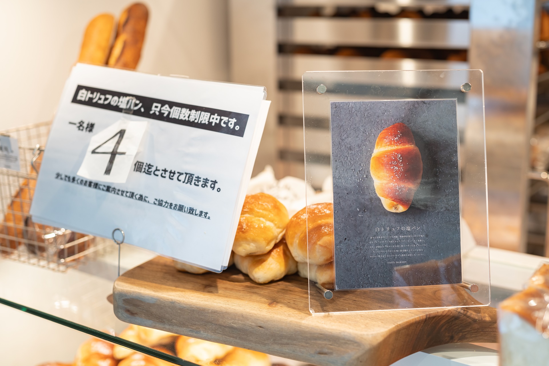 트러플 베이커리, 트러플 미니에서 이름처럼 가장 인기 있는 것은 백트러플(송로버섯) 소금빵(白トリュフの塩パン, 시오토류후노시오팡) 이며 트러플 향이 가득한 소금빵을 판매합니다.