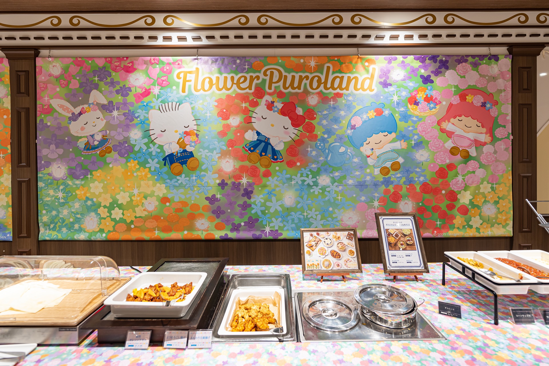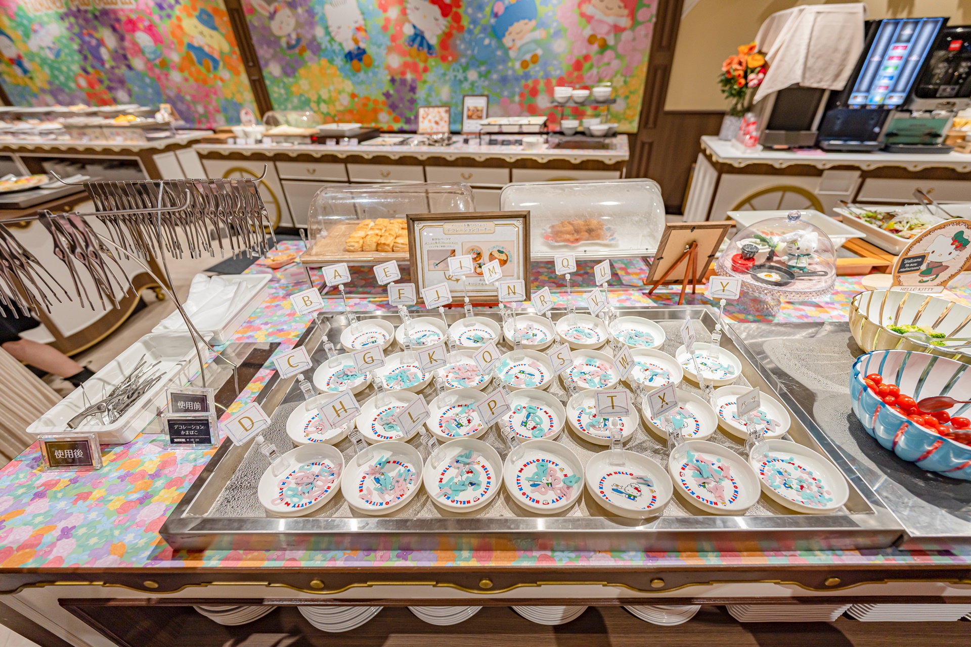 뷔페의 벽에는 헬로키티의 캐릭터가 그려진 작품들이 걸려 있어 이것만 보고 있어도 즐거운 것 같습니다.