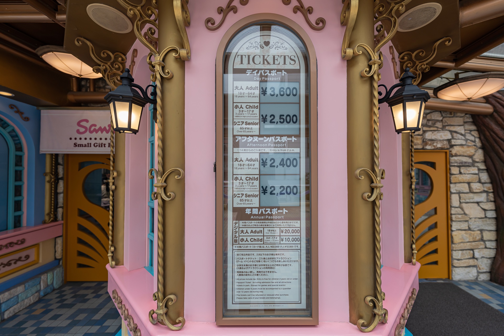 산리오 퓨로랜드의 요금은 성인 3,600엔~, 어린이(3~17세)와 65세 이상은 2,500엔~ 입니다.