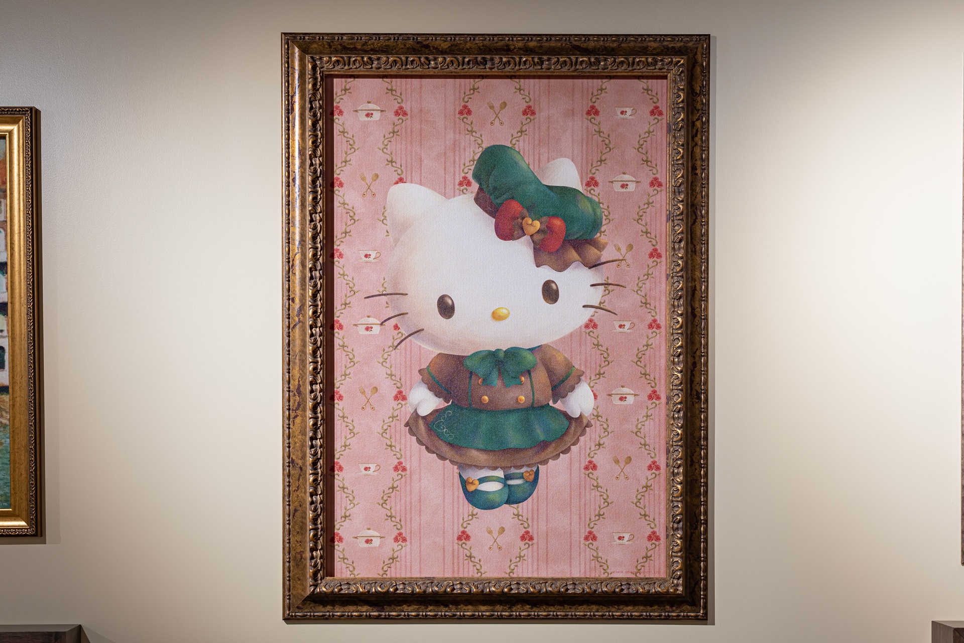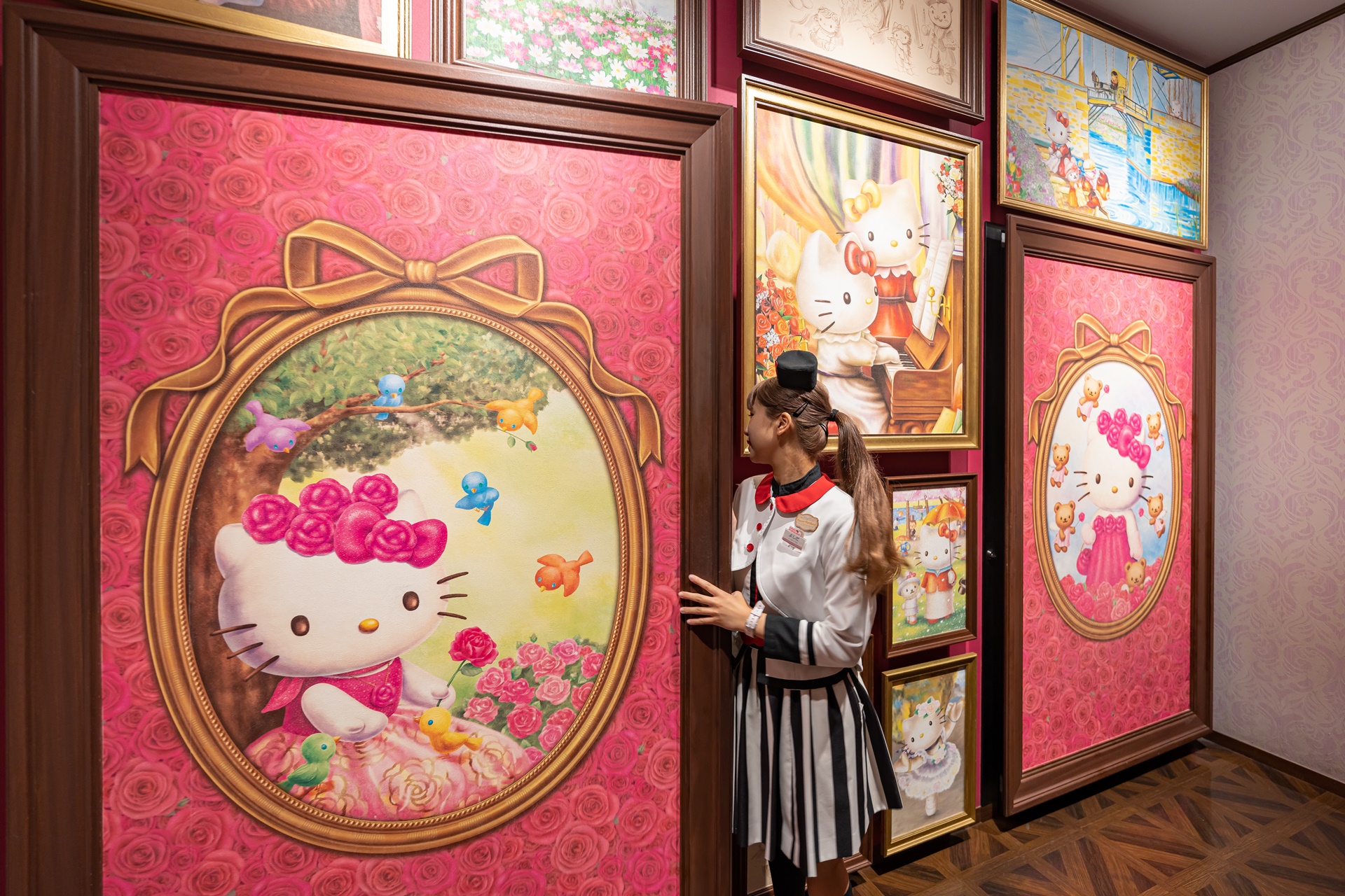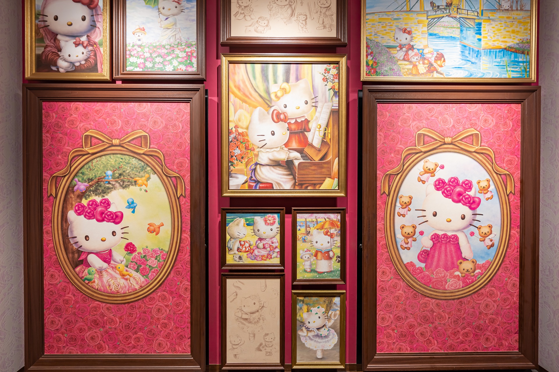 키티의 멋진 활동 그림이 곳곳에 걸려 있었습니다.