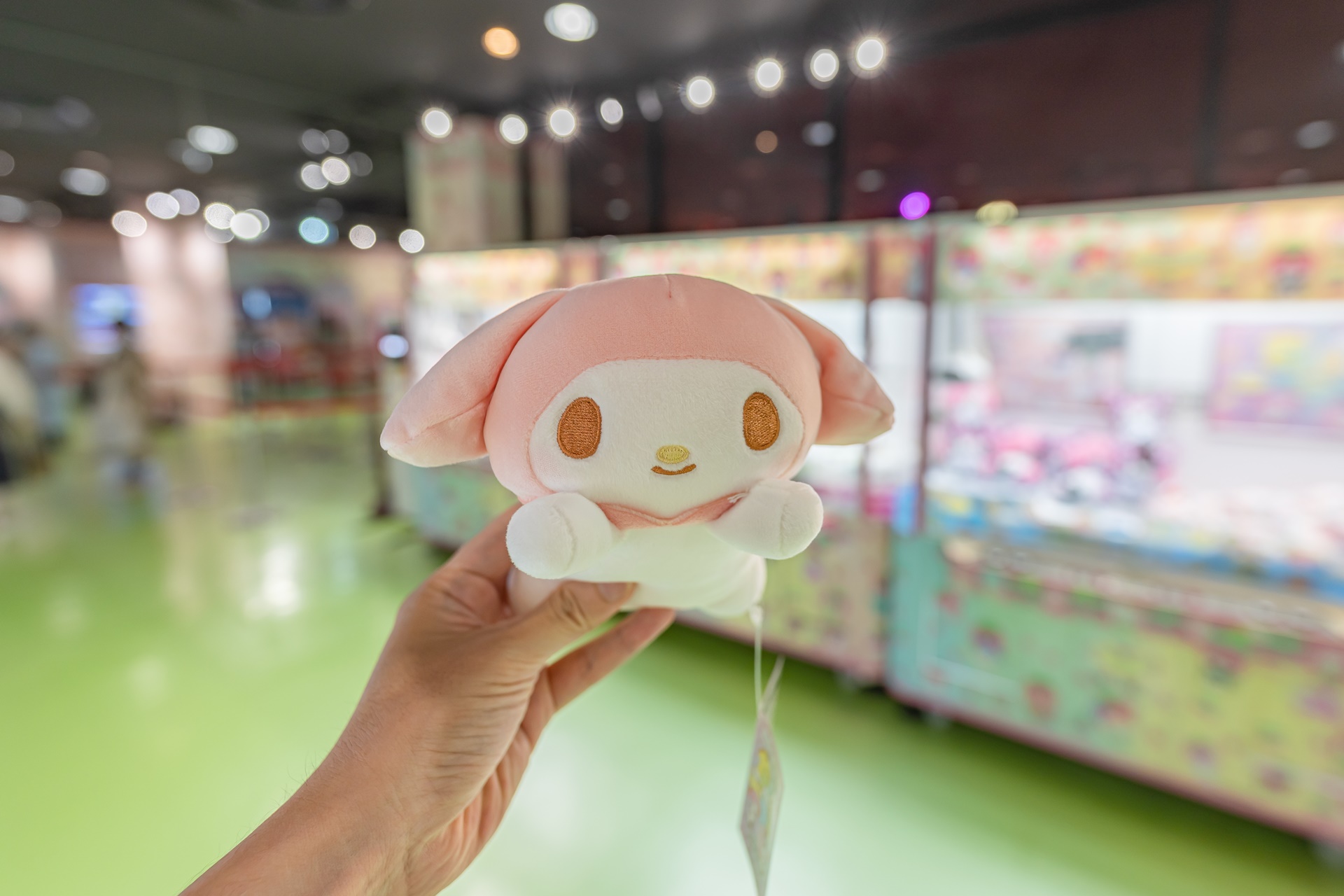마지막으로 산리오타운 2층의 게임 코너에서 UFO 캐쳐를 하여 귀여운 마이멜로디 인형을 뽑았습니다.