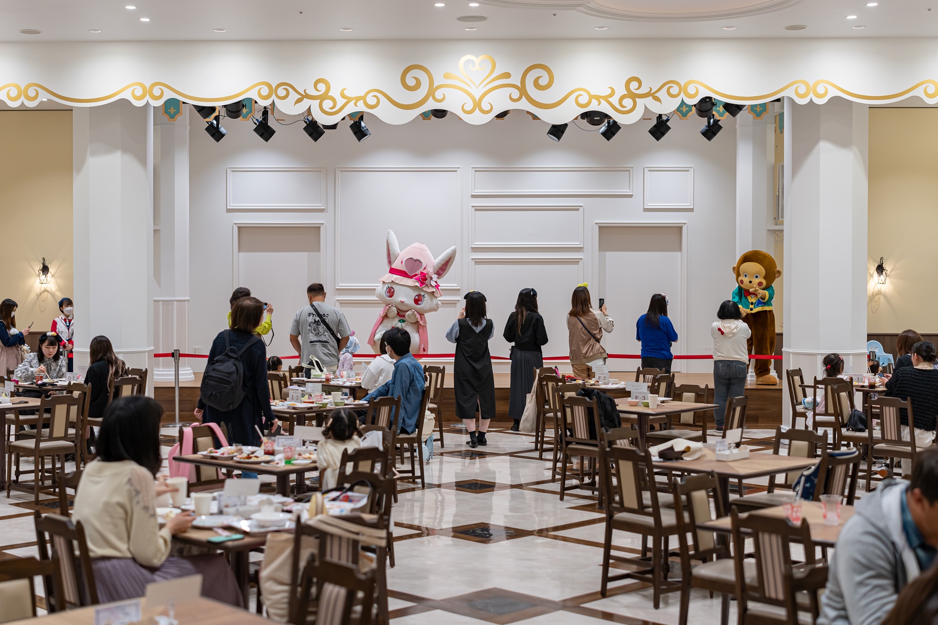 레스토랑에서는 오리지널 코스튬을 입은 캐릭터와 만날 수 있습니다. 등장하는 캐릭터는 날짜에 따라 다릅니다.