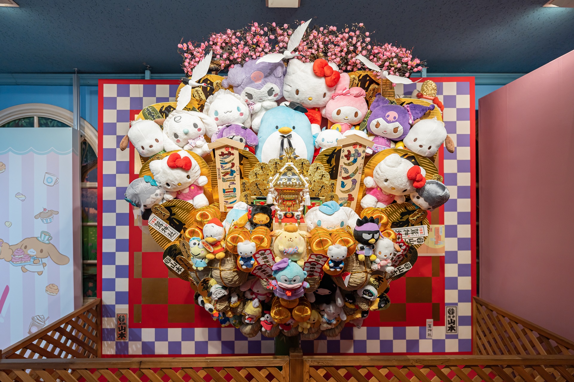 산리오 캐릭터들이 모두 모여 있는 귀여운 일본 풍 장식