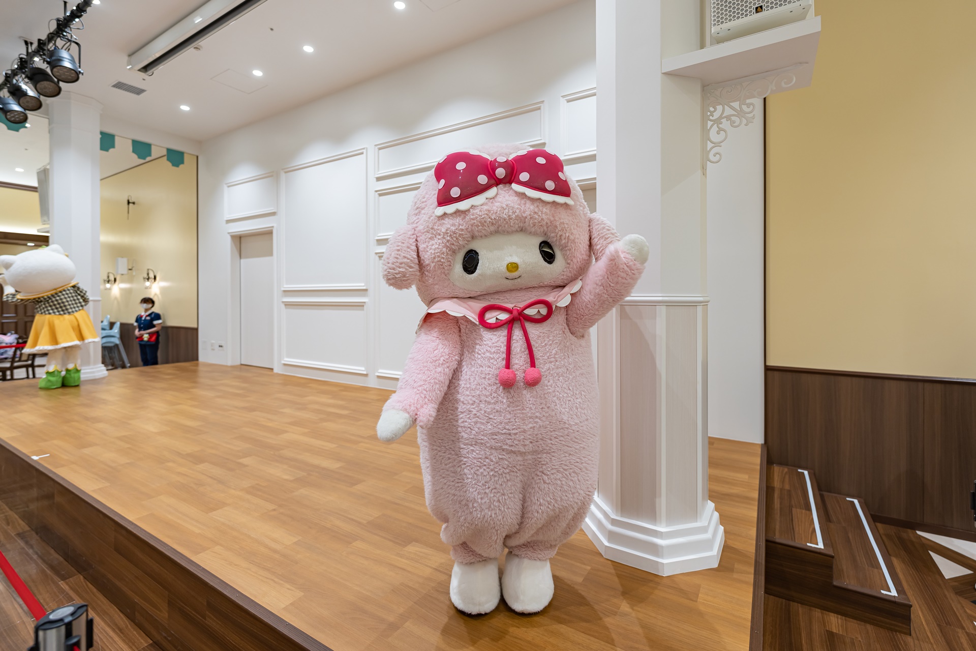 이곳의 스텝은 헬로키티를 중심으로 디어다니엘, 시나모롤, 마이멜로디, 폼폼푸린, 위시미멜이 이곳의 스텝입니다.