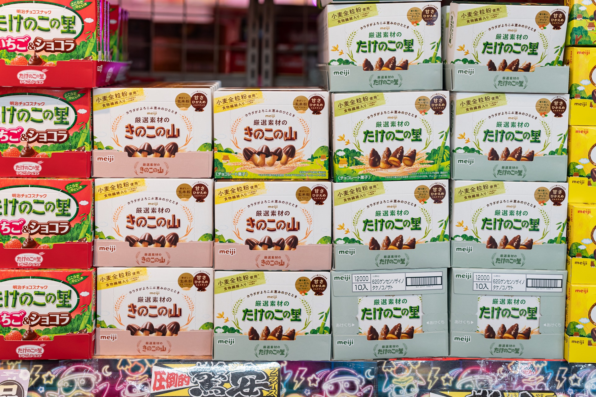 초코송이라고 한국에도 있지만 뭔가 몇 배는 맛이 업그레이드 된 것 같은 키노코노야마(きのこの山), 부드러운 초코와 바삭한 과자가 잘어울리는 죽순모양의 다케노코노사토(たけのこの里)