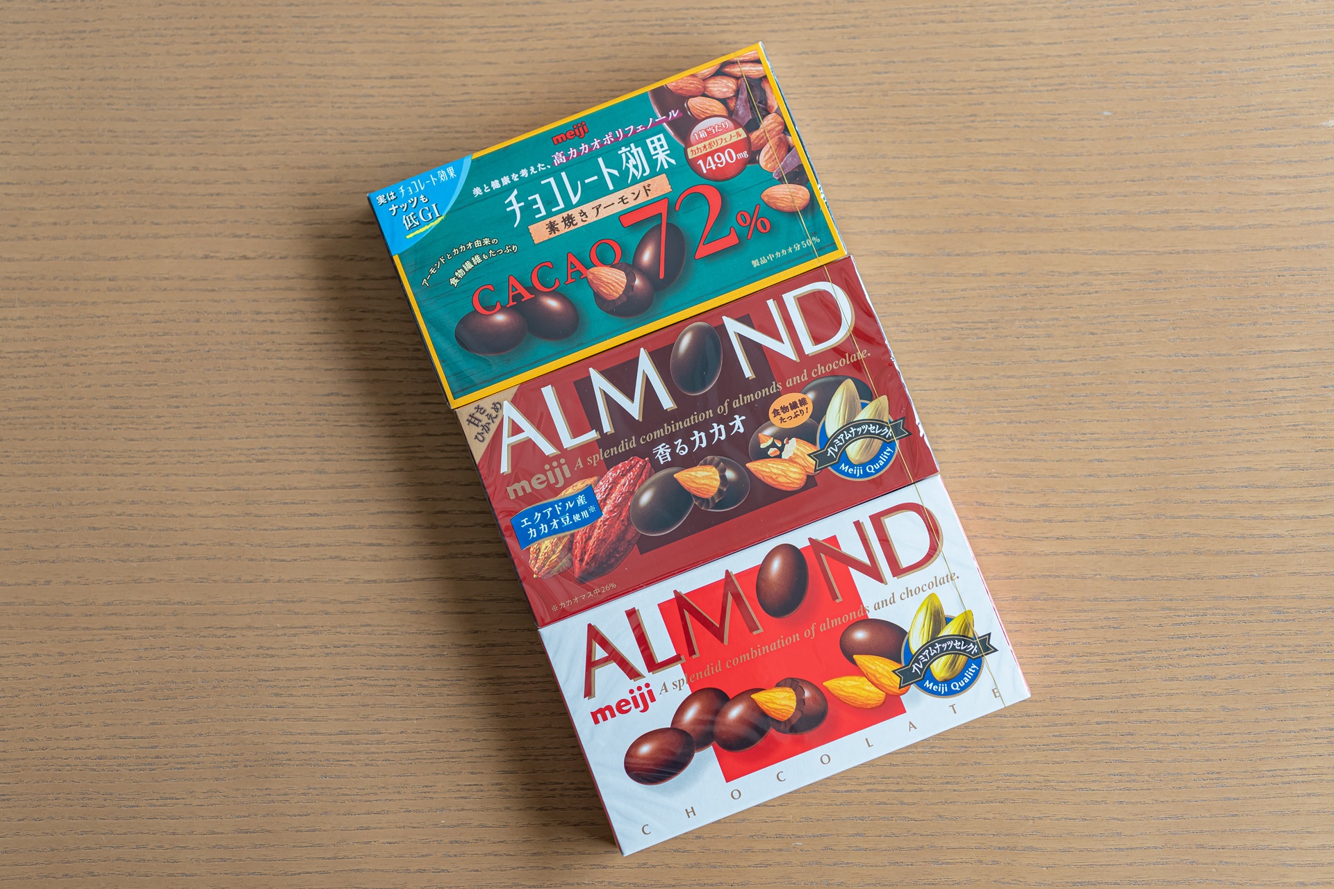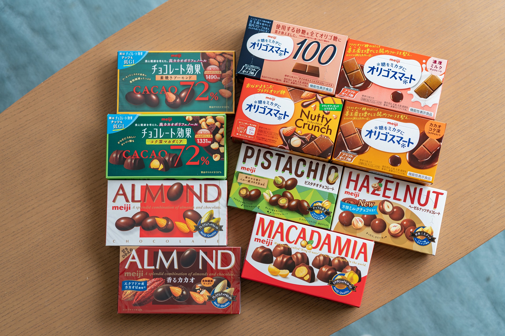 메이지는 건과류와 초콜릿을 정말 조화롭게 잘 만드는 것 같습니다. 처음 먹었던 마카다미아는 물론 아몬드 초콜릿도 너무 맛있었고 양도 한국의 아몬드 초콜릿 보다 2배는 되는 것 같아 놀랐었습니다. (한국의 아몬드 초콜릿은 안에 케이스가 있어 양이 적은편), 피스타치오 해즐럿 제품도 있어 구매해 보았고 설탕을 줄여 조금은 마음 편하게 한번에 한통을 다 먹을 수 있는 카오루 카카오 아몬드(香るカカオ), 진한 다크 초콜릿을 좋아해 보이면 구매하는 초콜릿의 효과 카카오 72% 제품들, 마지막으로 너티 크런치 올리고 스마트