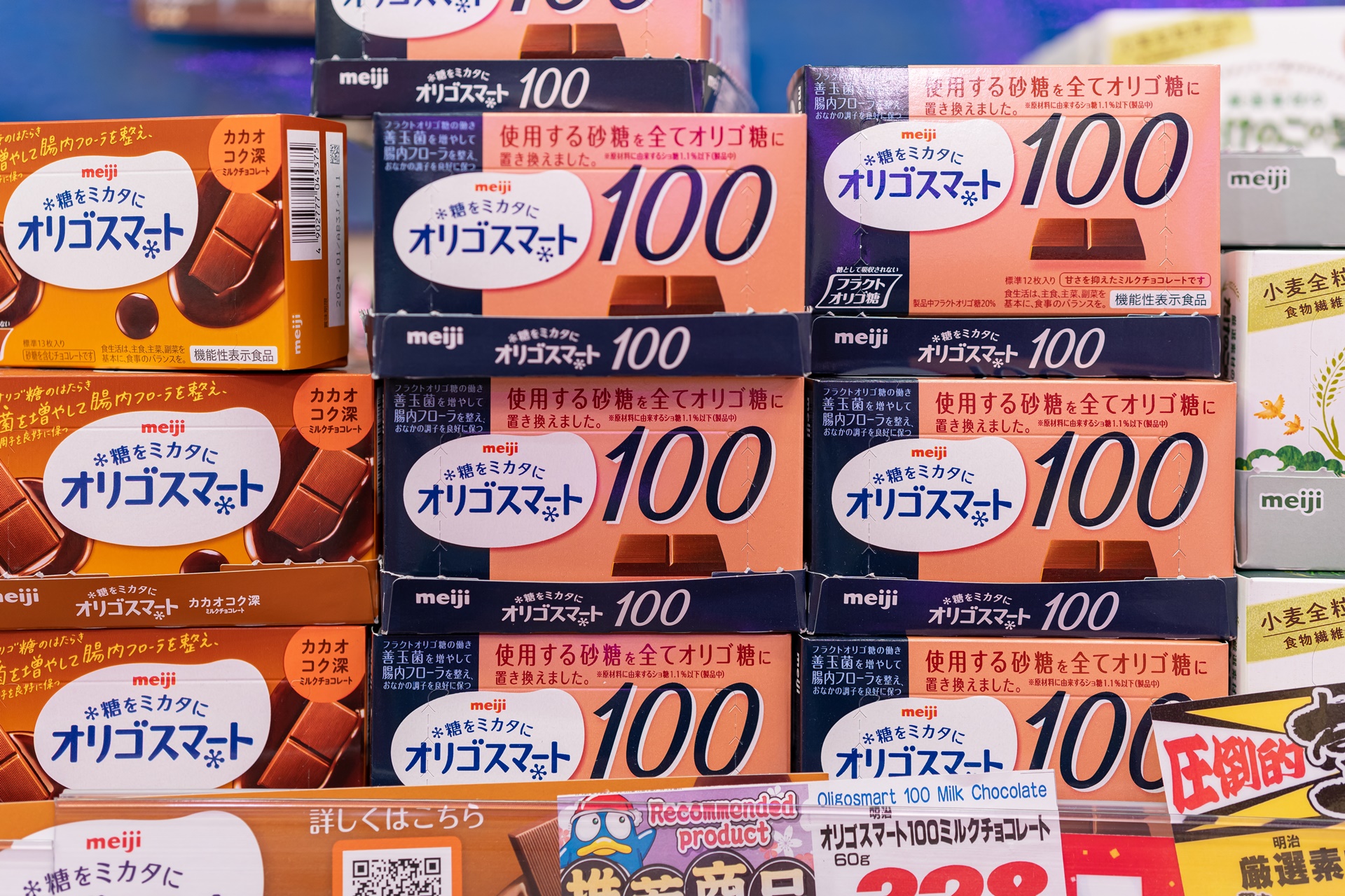 메이지는 건과류와 초콜릿을 정말 조화롭게 잘 만드는 것 같습니다. 처음 먹었던 마카다미아는 물론 아몬드 초콜릿도 너무 맛있었고 양도 한국의 아몬드 초콜릿 보다 2배는 되는 것 같아 놀랐었습니다. (한국의 아몬드 초콜릿은 안에 케이스가 있어 양이 적은편), 피스타치오 해즐럿 제품도 있어 구매해 보았고 설탕을 줄여 조금은 마음 편하게 한번에 한통을 다 먹을 수 있는 카오루 카카오 아몬드(香るカカオ), 진한 다크 초콜릿을 좋아해 보이면 구매하는 초콜릿의 효과 카카오 72% 제품들, 마지막으로 너티 크런치 올리고 스마트
