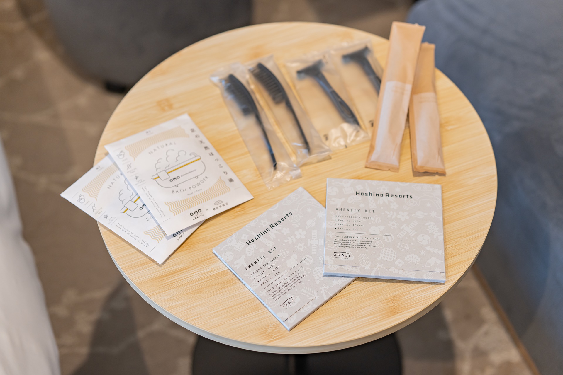 호텔이서 구입한 어메니티 키트와 목욕용 버블