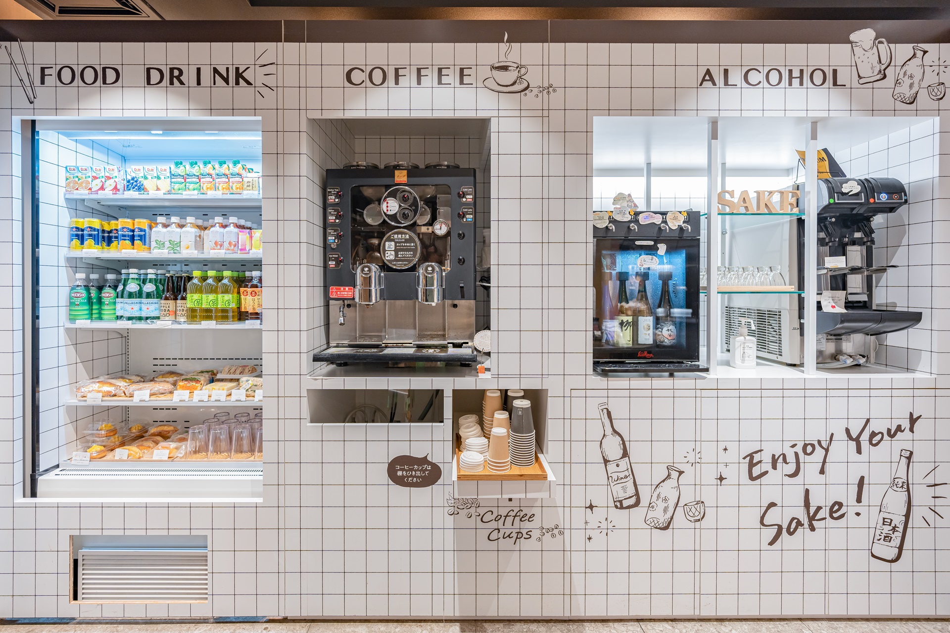 다음날 아침, 아침을 먹기 위해 1층 로비를 찾았습니다. OMO3 교토 도지 by 호시노 리조트에는 24시간 운영되는 OMO Food & Drink Station이 있어 이곳에서 간단히 먹을 수 있었습니다.