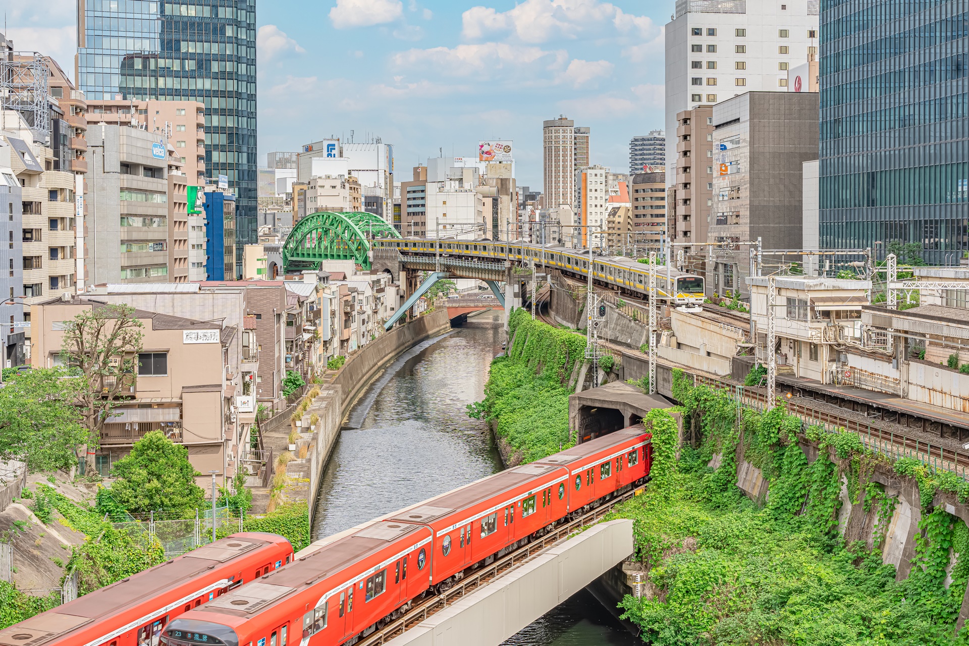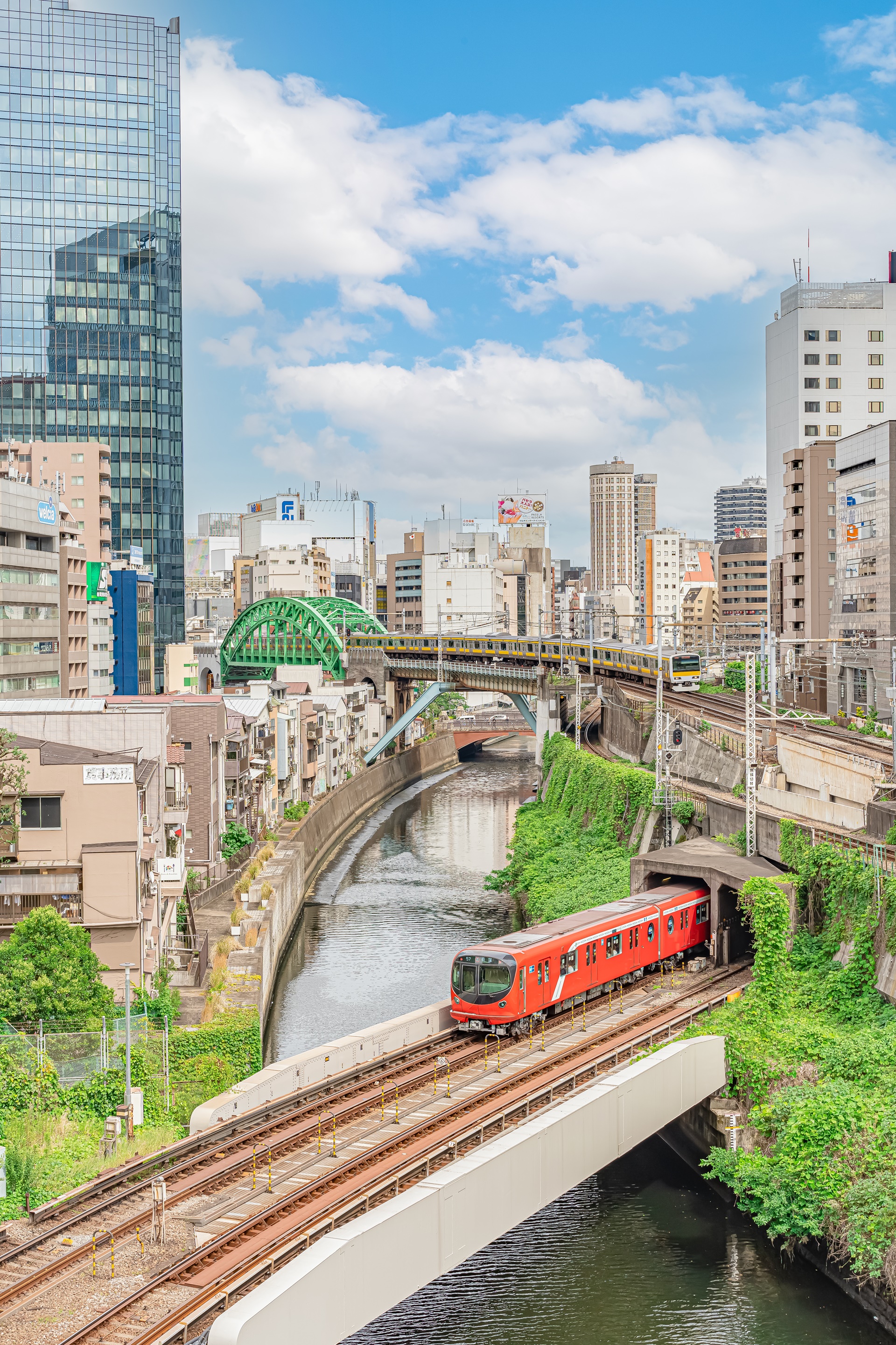 운이 좋으면 이 3열차가 동시에 지나가는 모습을 히지리바시 주변에서 감상할 수 있으며 도쿄의 멋진 풍경 중 하나로 알려져 있습니다.