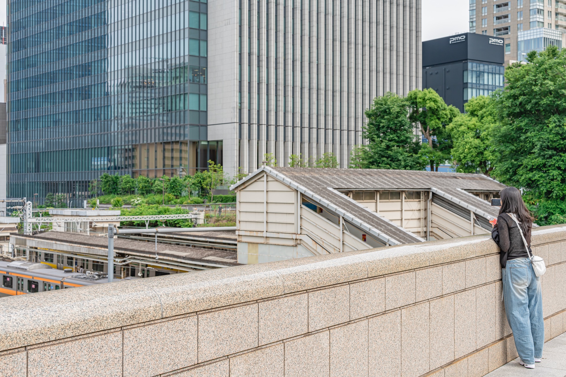 노란색 열차인 JR 소부선 전차, 주황색인 JR 추오선 전차가 같은 역을 이용하며 다리 아래를 도쿄메트로 마루노우치(丸ノ内)선 빨강색 지하철이 다닙니다.