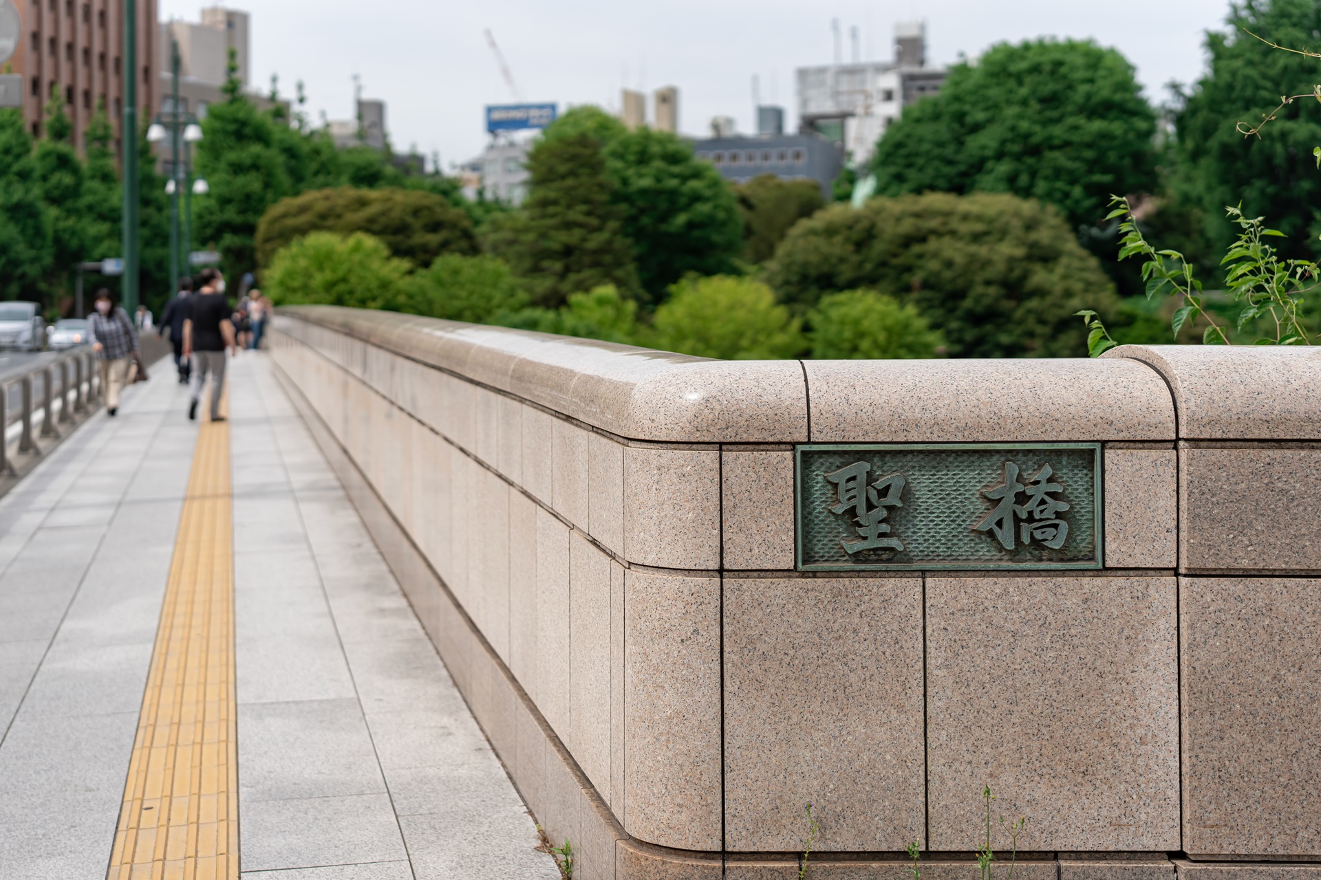 히지리바시는 오차노미즈역에서 2~3분 거리에 있으며 1927년에 만들어진 다리입니다. 일본의 건축가 야마다 마모루(山田守)가 설계하였으며 오차노미즈를 가로지르는 간다(神田)강을 건너기 위해 만들었습니다. 지금의 히지리바시는 2017년에 수명연장 공사를 하여 보강된 다리입니다.