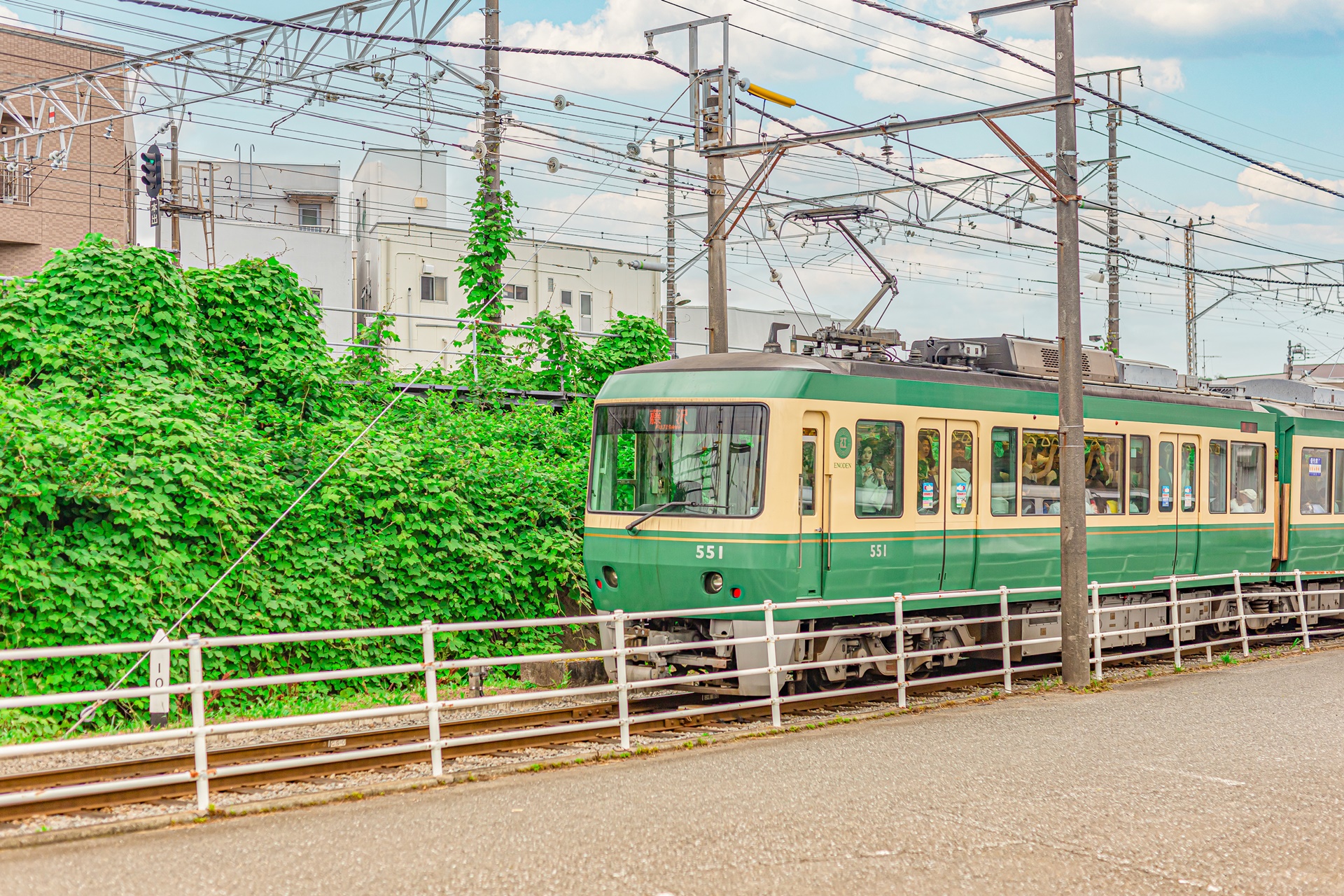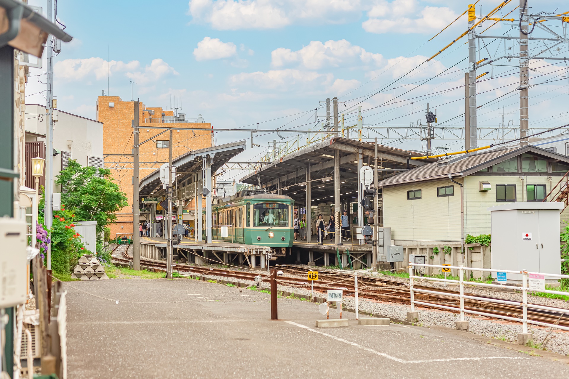 초록의 에노덴 열차, 가마쿠라와 에노시마 해변을 달리며 잠시 휴식을 취하기 위해 종점인 가마쿠라 역에 들립니다.