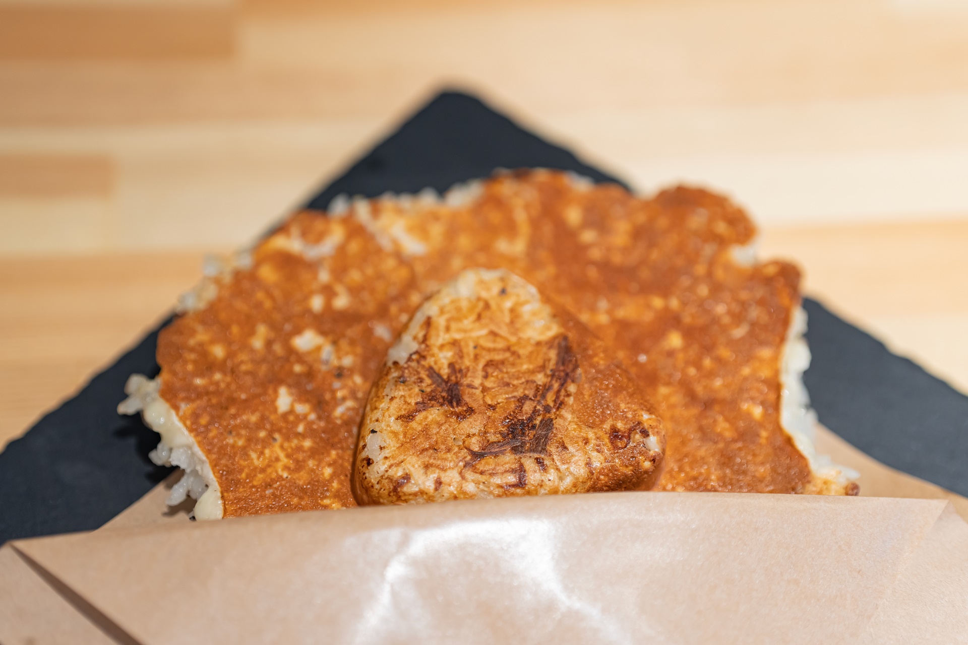 구운 삼각김밥으로 틀에서 꾹 눌러 삼각김밥 주변에 고소한 누룽지가 생긴 삼각김밥 입니다.