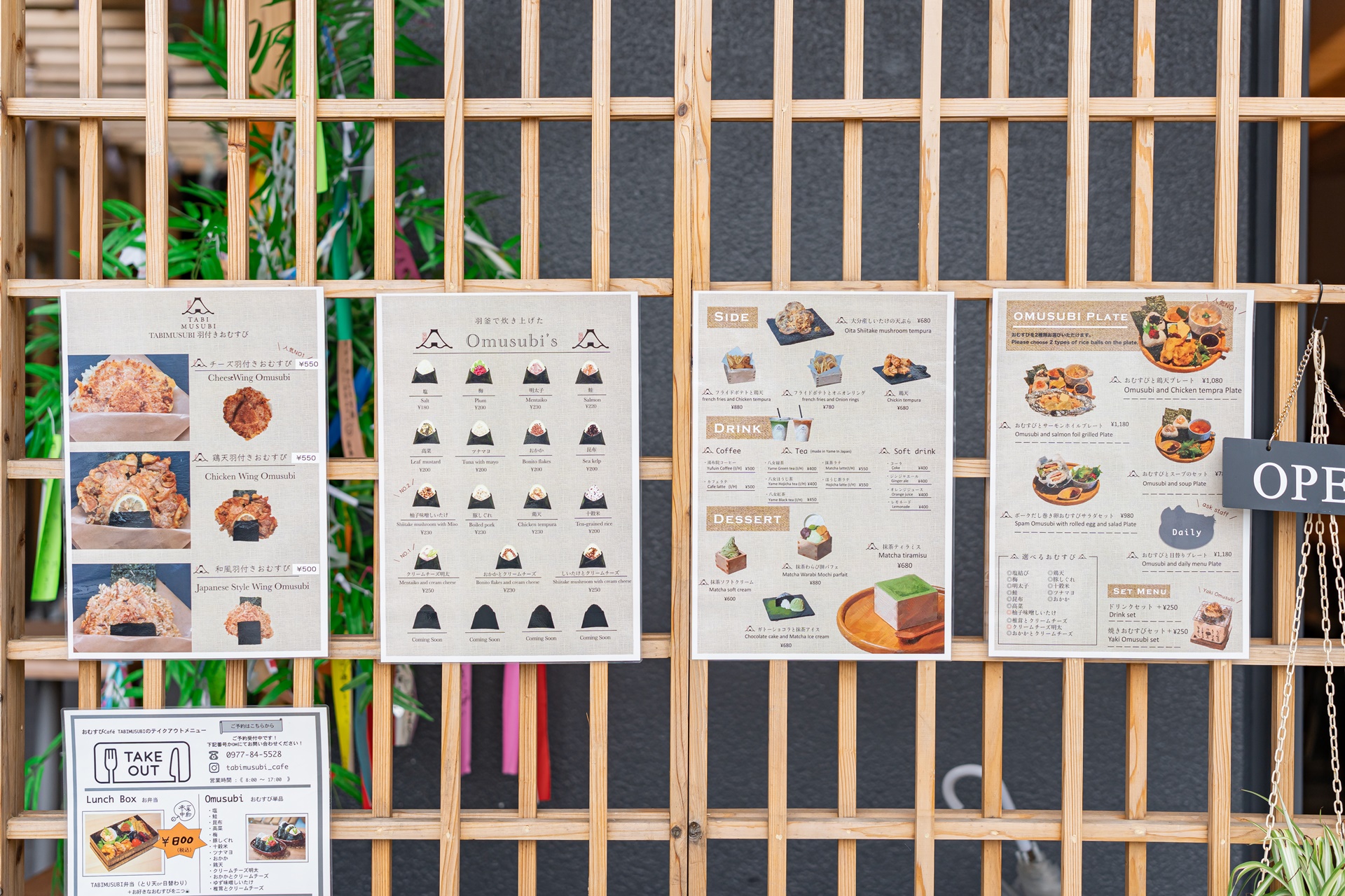 여행하는 삼각김밥이라는 의미로 가게 이름도 재미있고 목제로 깔끔하게 꾸며진 인테리어도 좋았으며 유후인 지역 특산물을 이용한 다양한 요리를 제공하는 것이 좋았습니다.