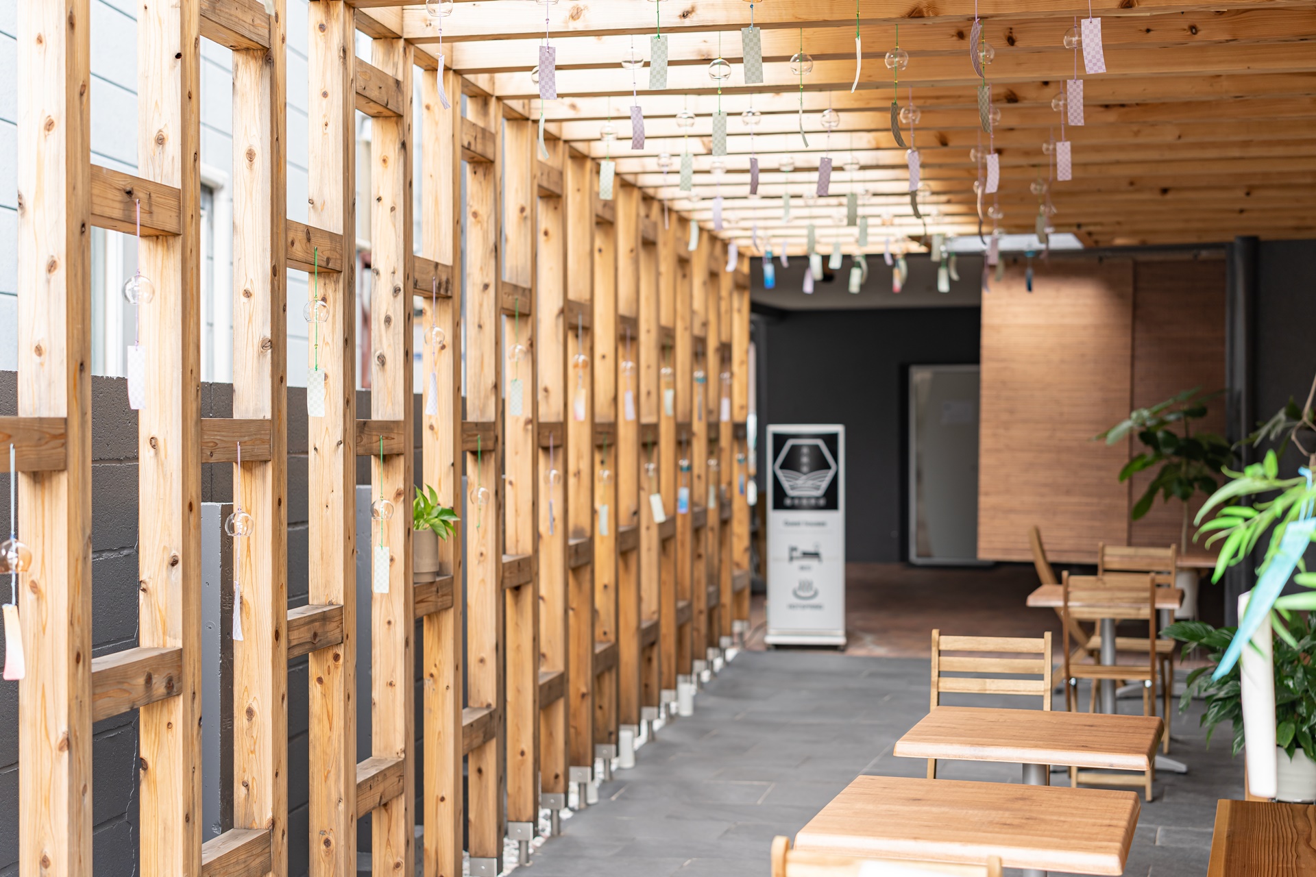 야외에도 테이블이 있었는데 유후인의 여름은 무덥기 때문에 이용하는 사람이 없었습니다.