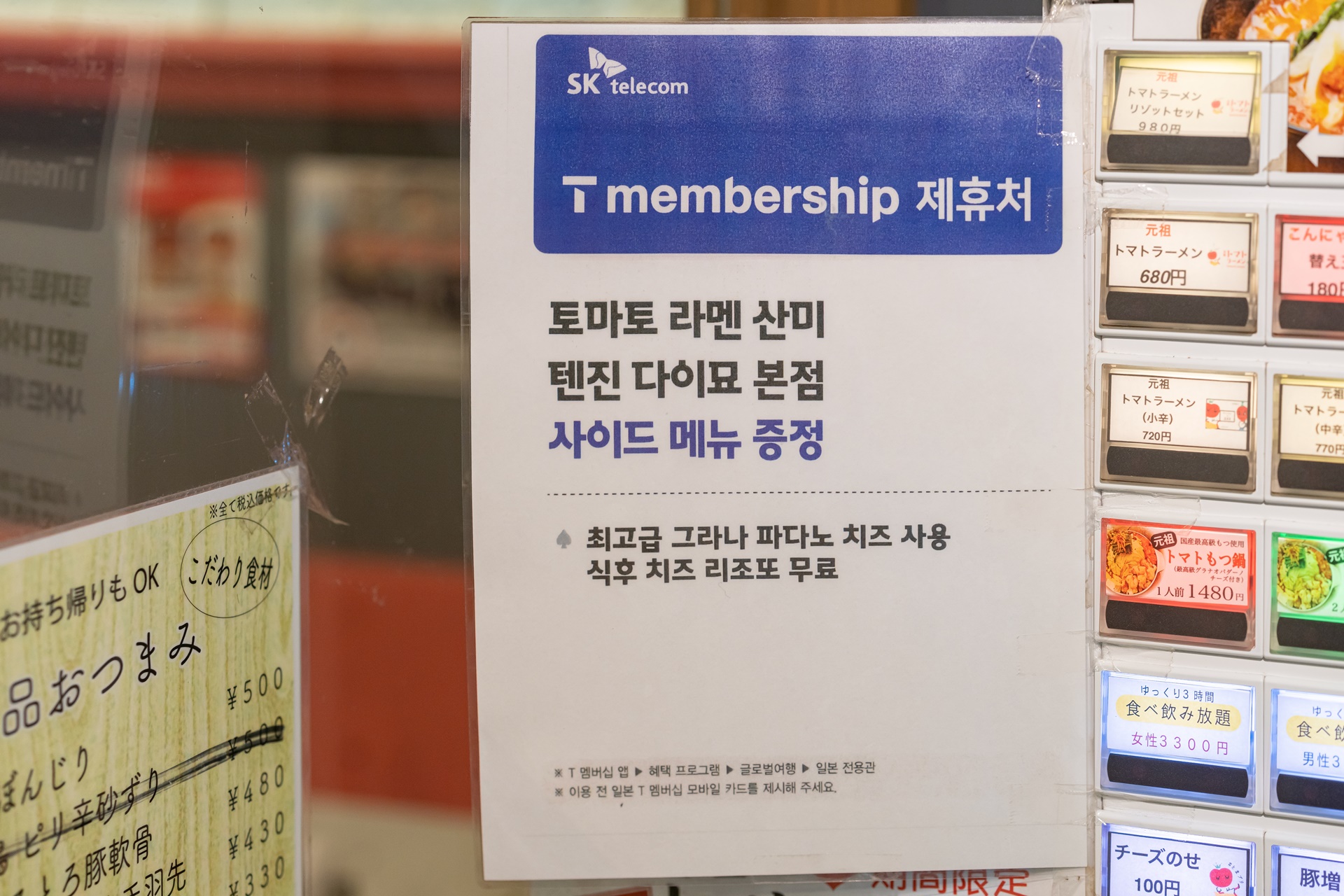 24시간 운영하며 토마토 라멘 이외에도 두유 라멘, 카라멘(매운 라멘) 등 메뉴가 다양하며 주로 야채 본연의 맛을 살린 메뉴가 많았습니다. 가게 앞 메뉴 뒤에 아이유가 웃고 있었습니다.