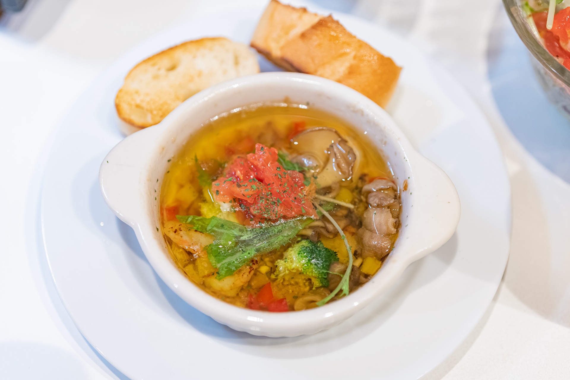 요것도 토마토가 들어있고 같이 나오는 쫄깃한 바게트 빵에 찍어 먹으면 아주 맛있습니다.
