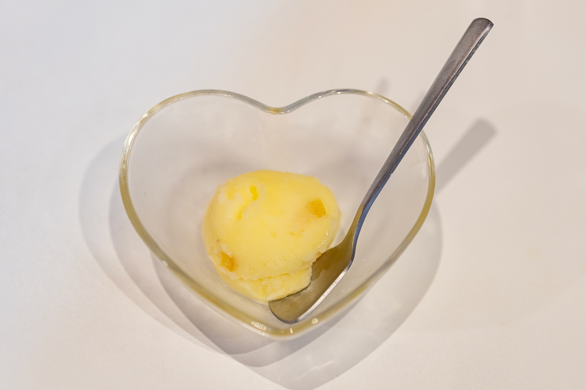 젤라토 안에 유자 껍질이 들어 있으며 유자향이 정말 강하고 산뜻하여 입가심하기에 아주 좋았습니다.