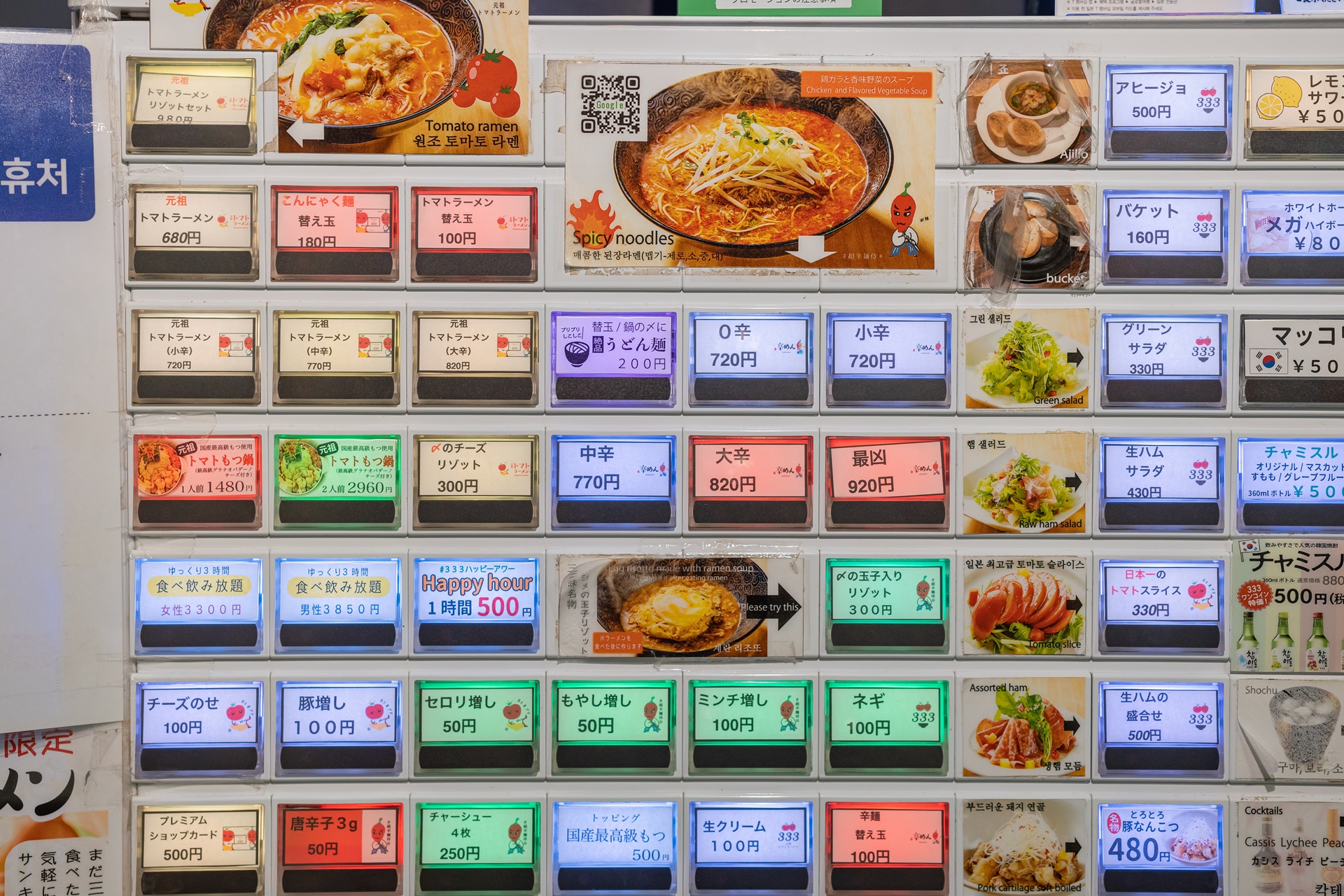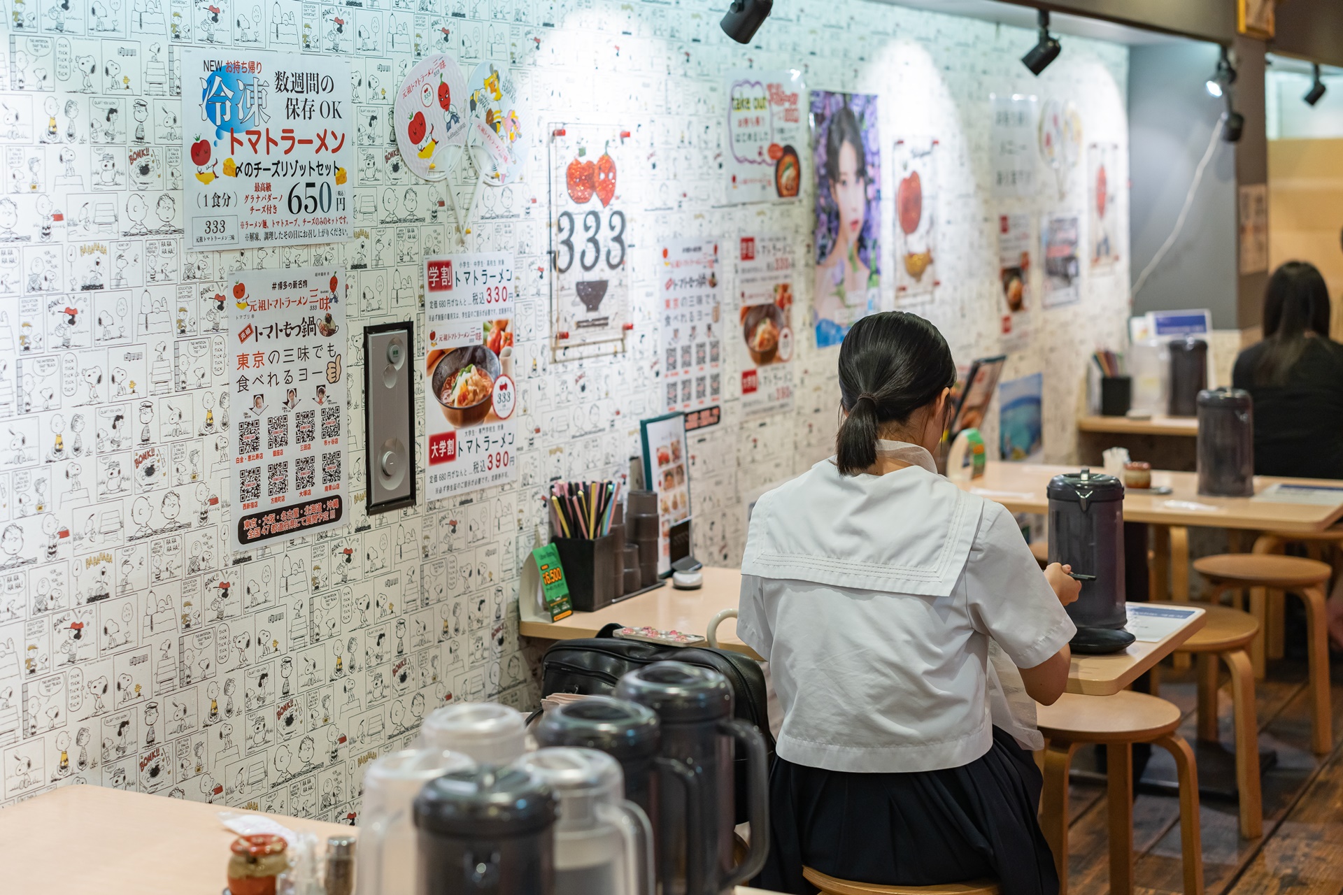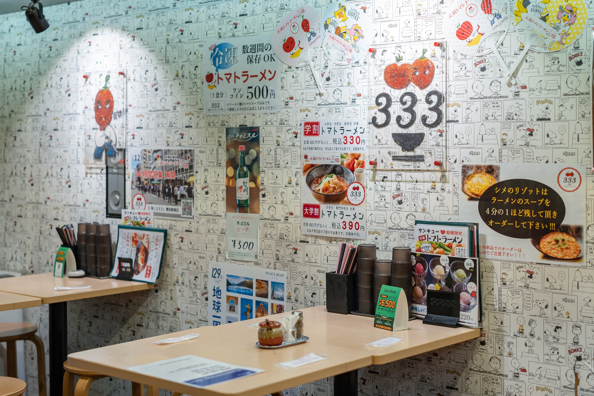후쿠오카의 라멘은 돼지뼈를 삶은 돈코츠 라멘 가게가 많은데 이곳은 토마토와 야채를 이용한 산뜻한 라멘을 전문으로 하는 가게 입니다. 토마토 라멘도 후쿠오카가 원조이며 후쿠오카의 곳곳에 토마토 라멘 가게들이 많습니다. 이곳 다이묘점은 본점으로 2015년 부터 시작하였다고 합니다. 핑크색 간판에 귀여운 토마토 그림이 그려져 있는 간판을 보고 쉽게 찾을 수 있었습니다.