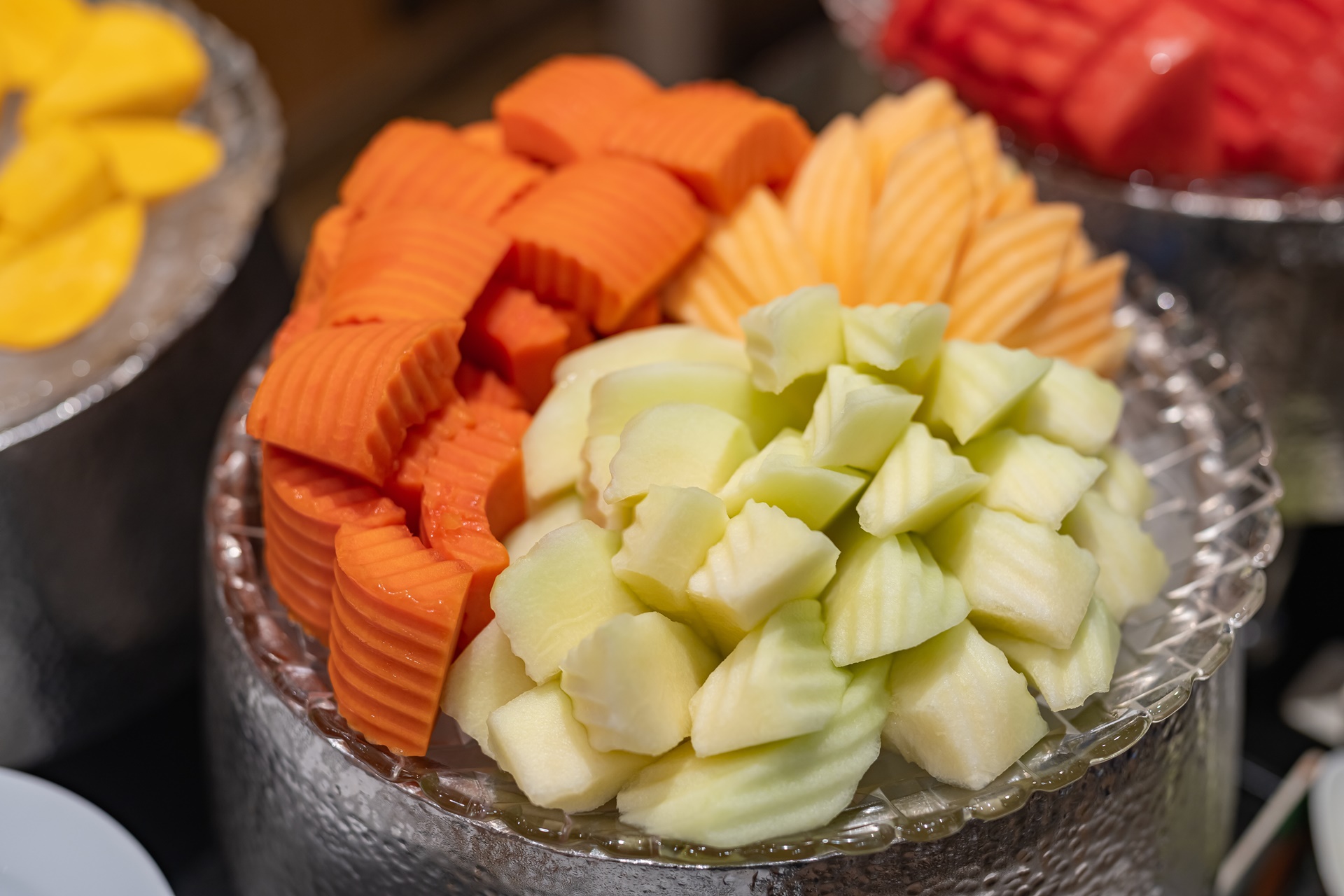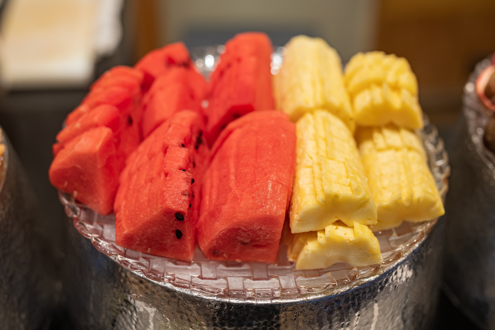 과일도 종류가 다양하고 먹기 좋게 잘 정리되어 있습니다.