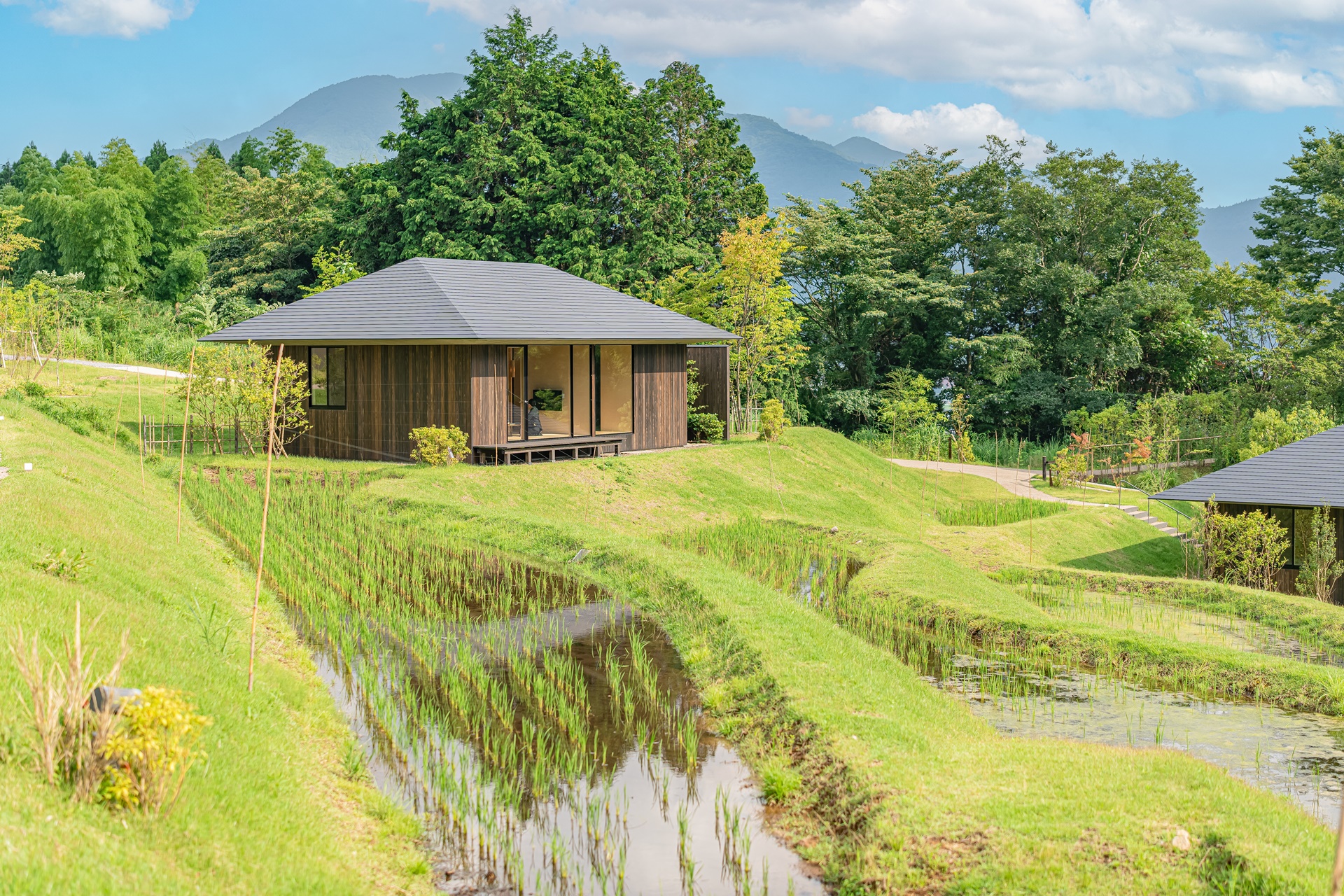 로비를 나오면 계단식 논과 함께 유후인의 아름다운 자연이 펼쳐집니다.