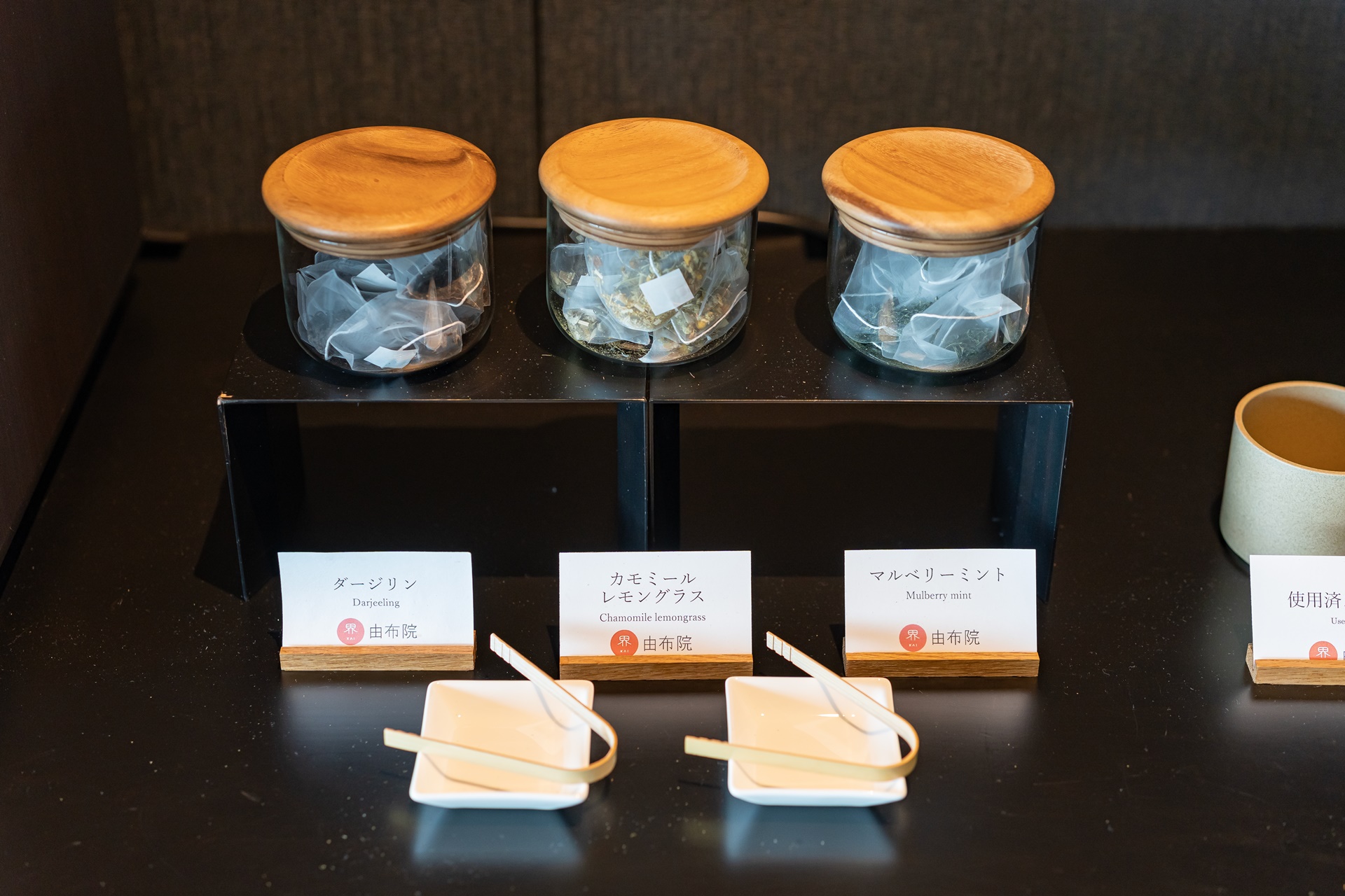 카이 유후인은 생수가 지급되지 않고 물통에 물이 담겨 있었습니다.