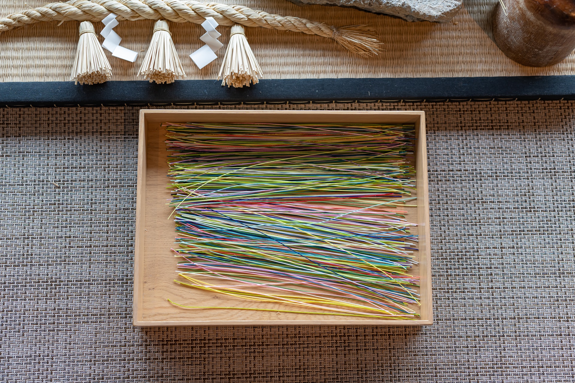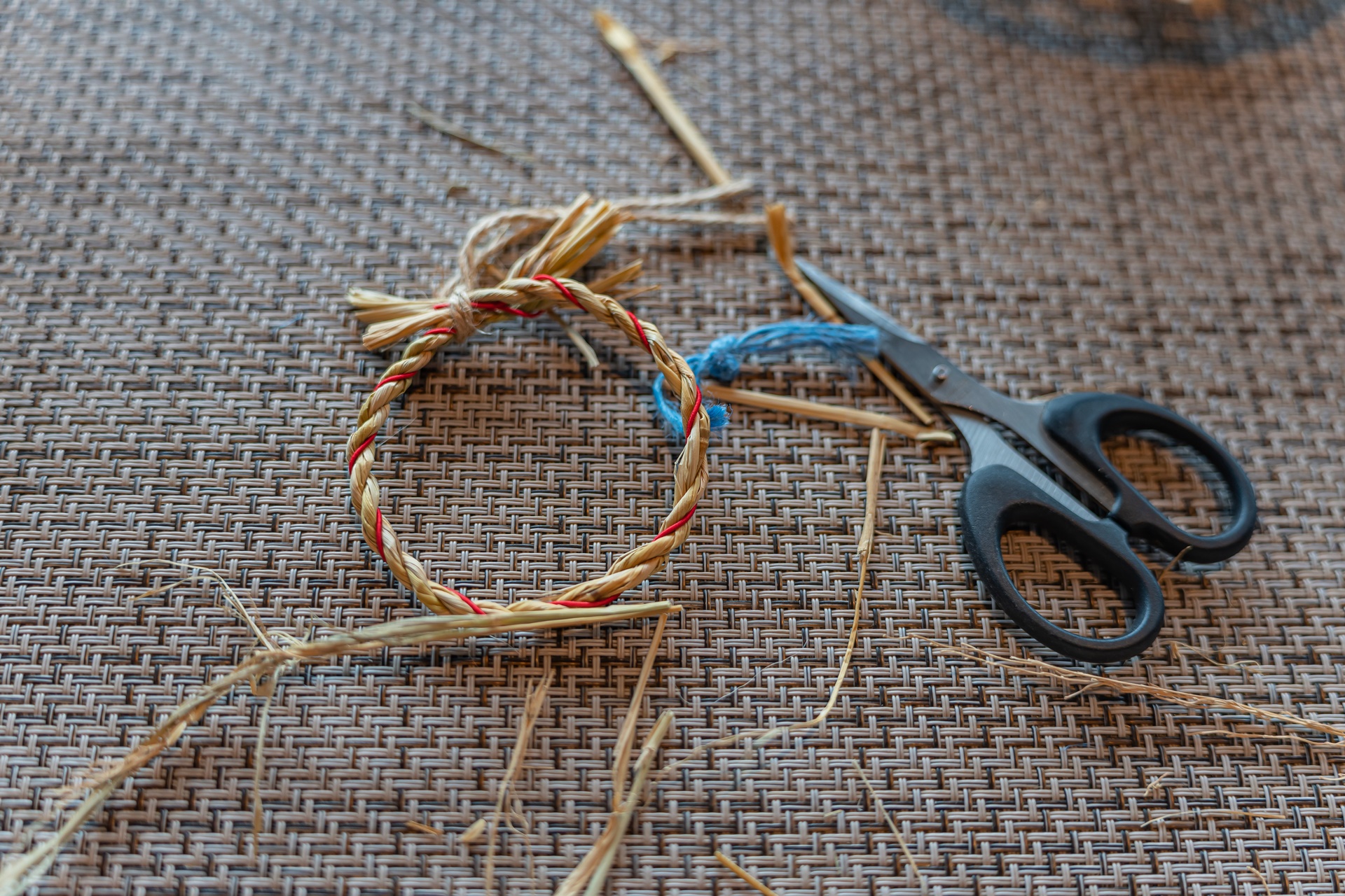 볏짚에 색을 더하고 새끼를 고정 시켜줄 끈