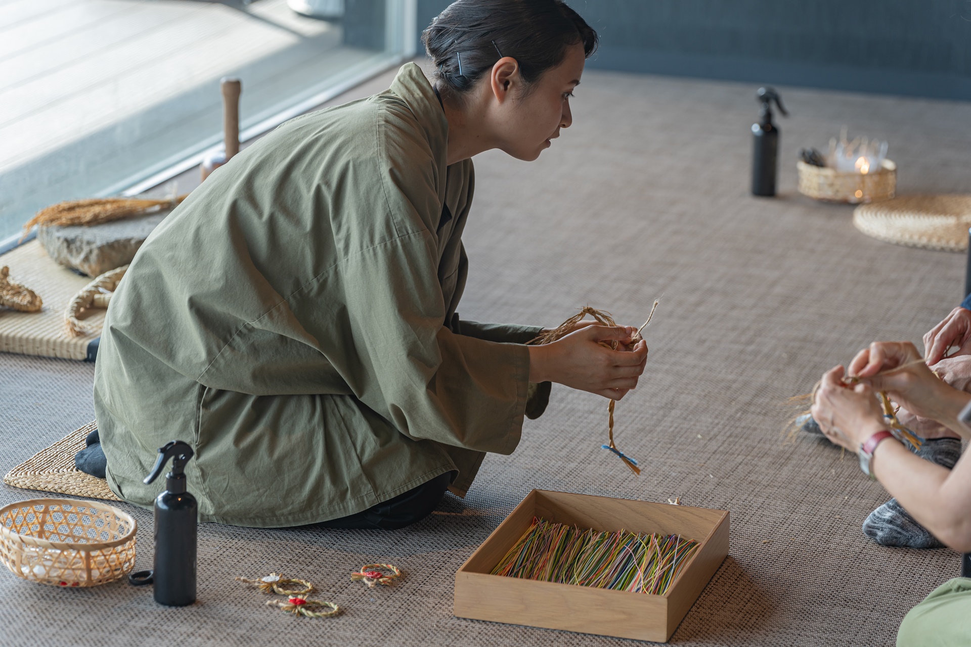 강사는 호시노 리조트 카이 유후인의 직원으로 체크인 할때 카운터, 아침에는 체조, 중간중간 새끼 꼬기 등 너무 다양한 일을 하고 있는 것 같습니다.